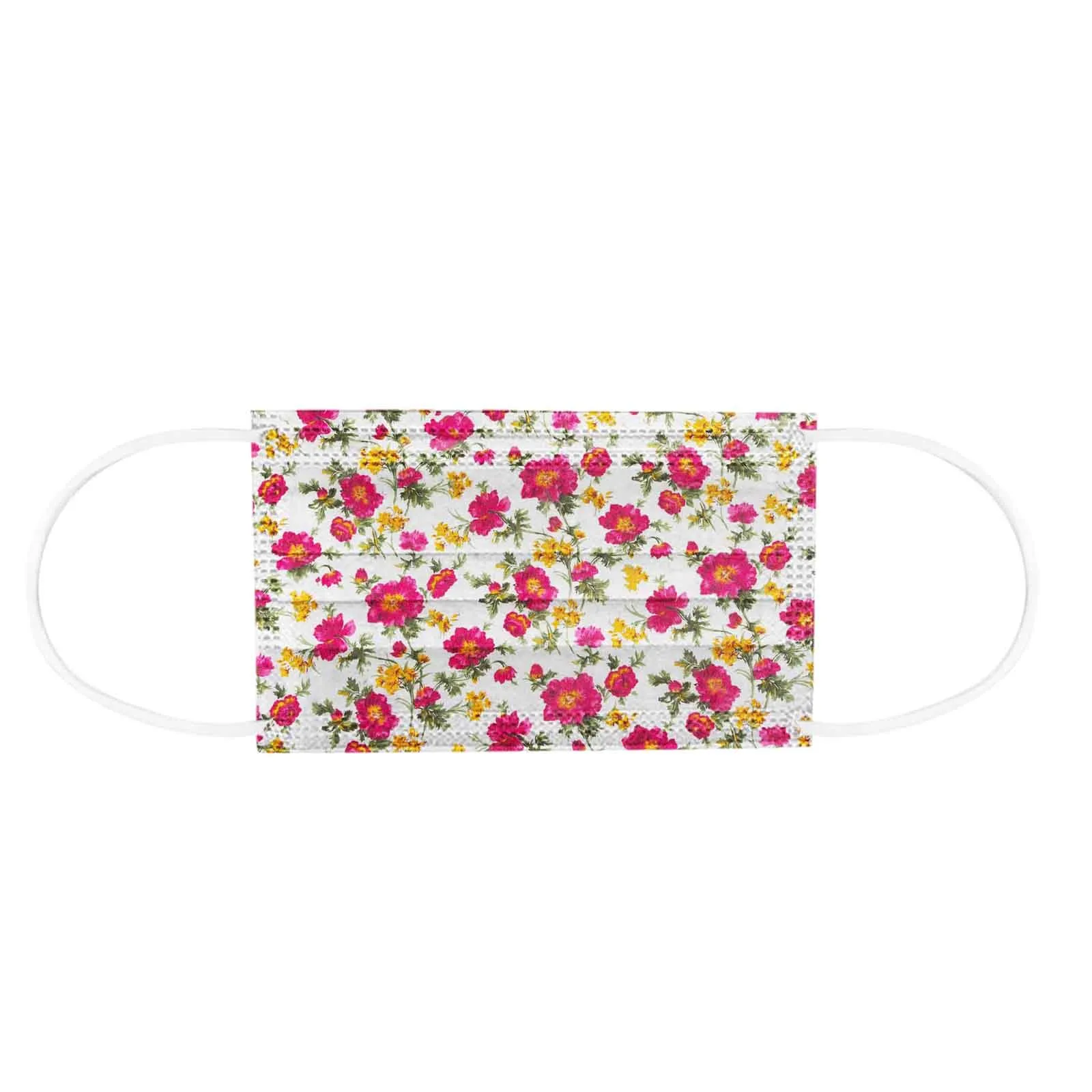Маска для лица одноразовая трехслойная с цветочным принтом, 1050 шт.