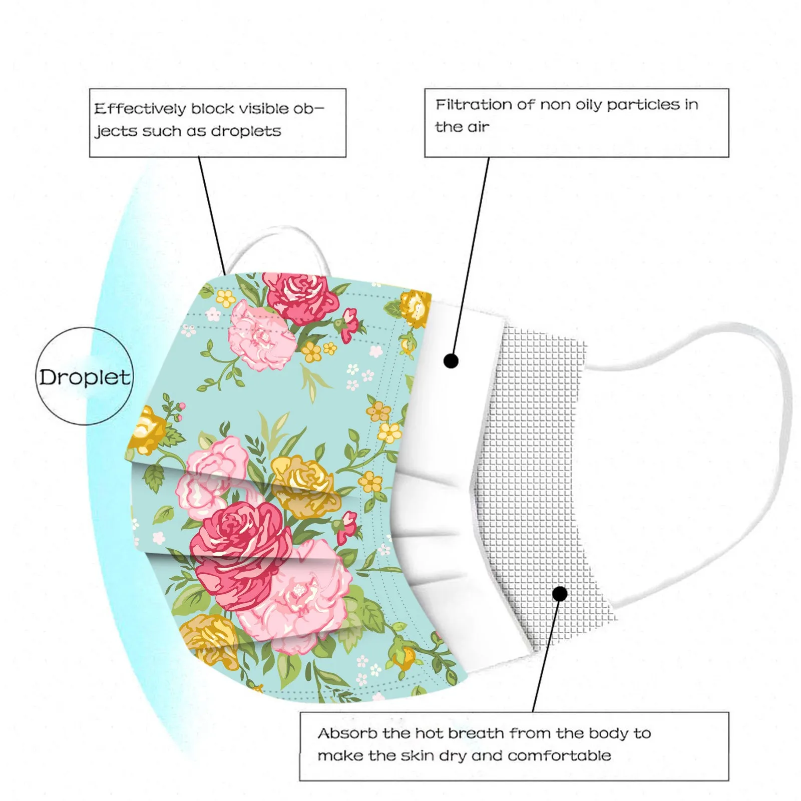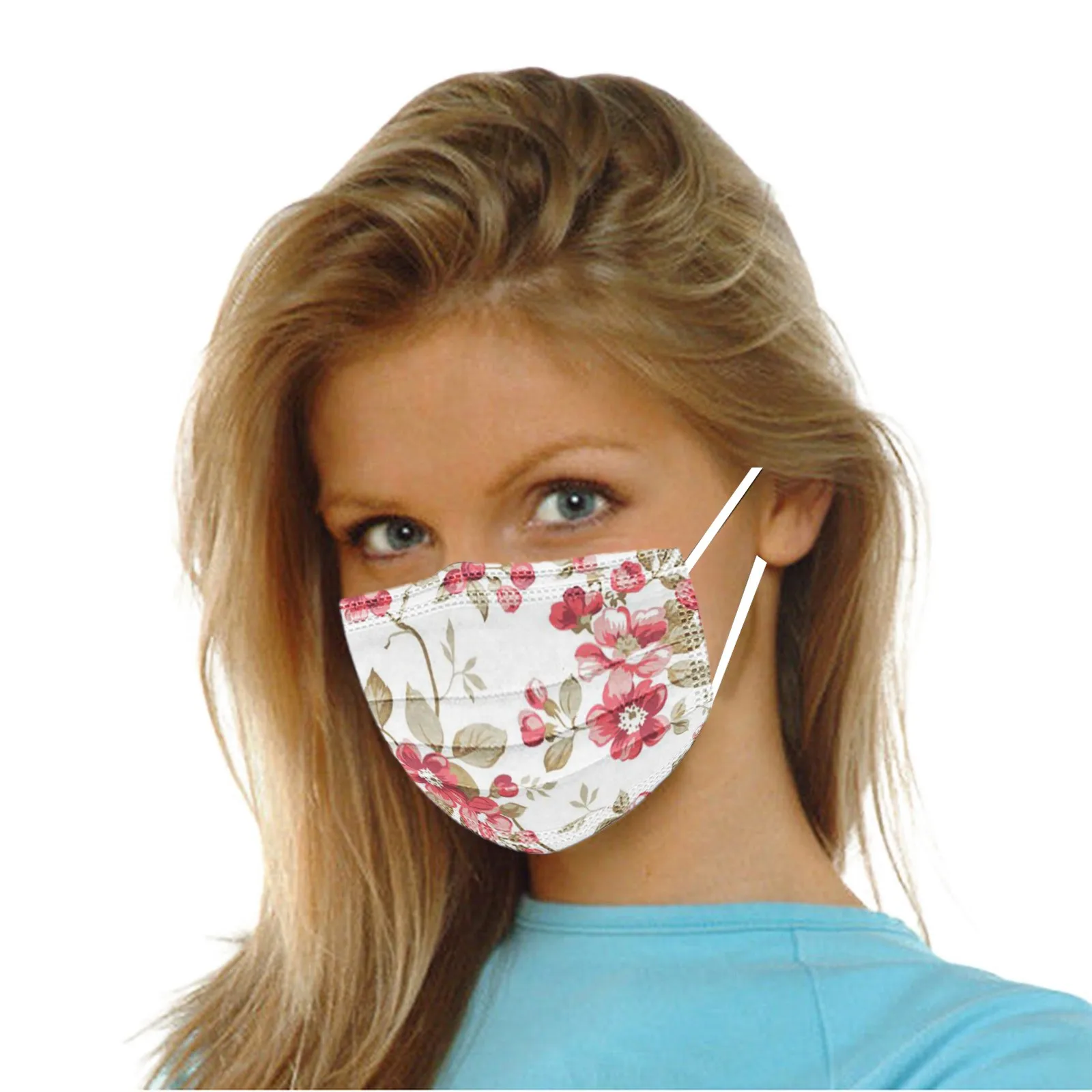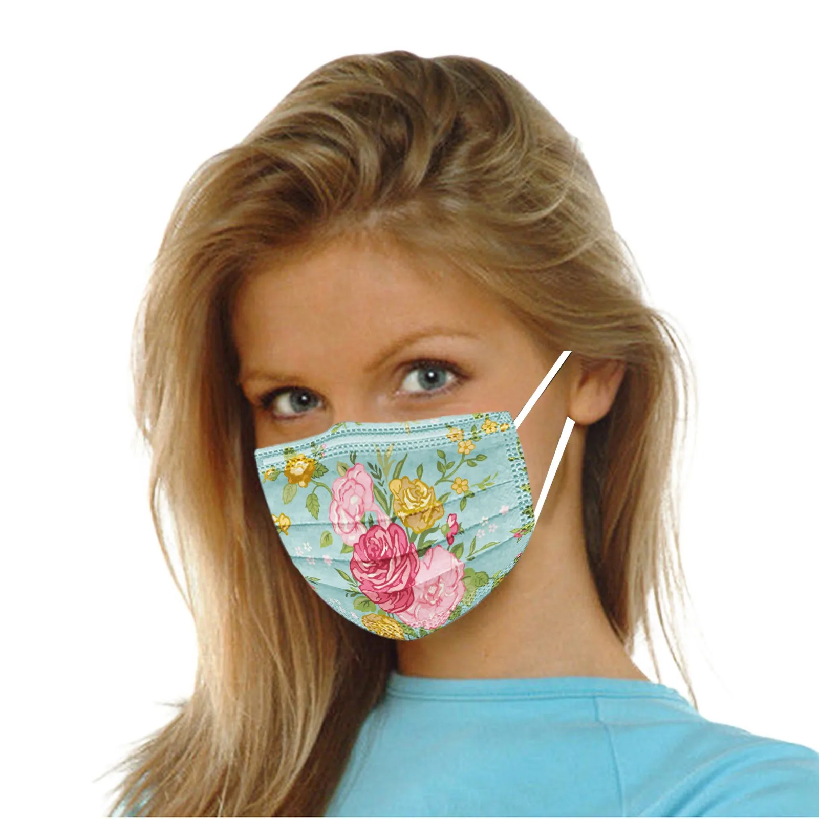 Маска для взрослых, маска для лица с цветочным принтом, одноразовая...