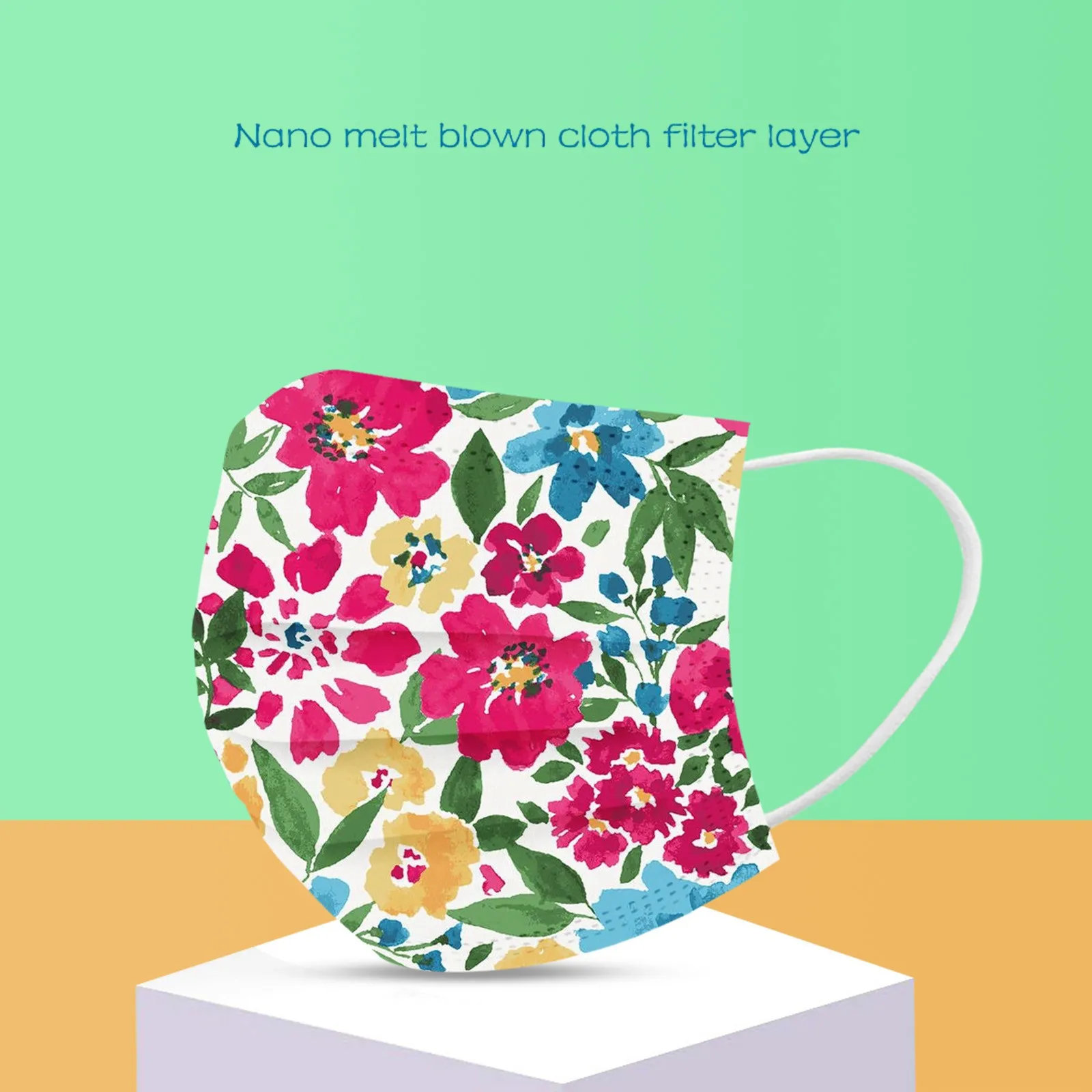 Маска одноразовая для лица с цветочным принтом, пылезащитная 3-слой...