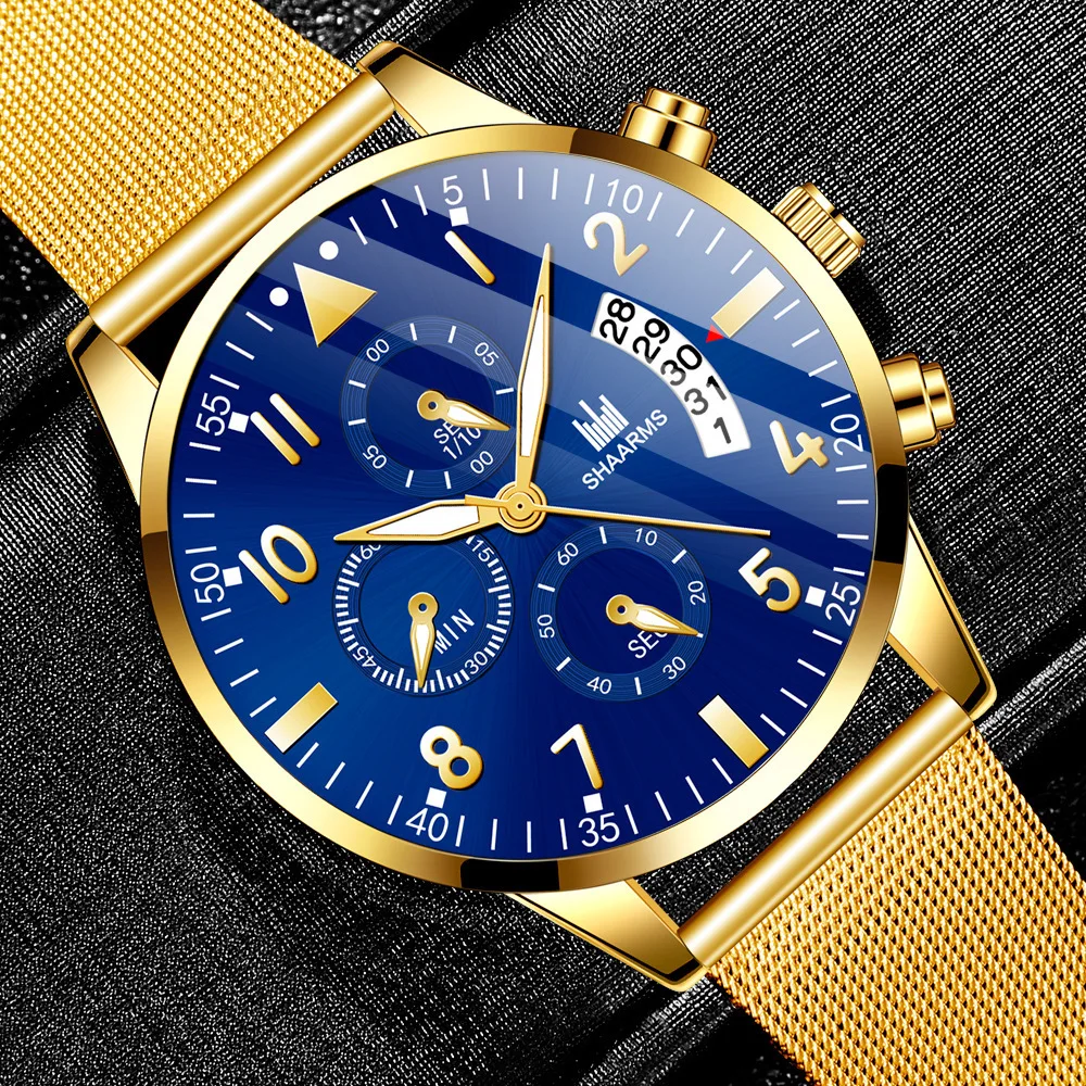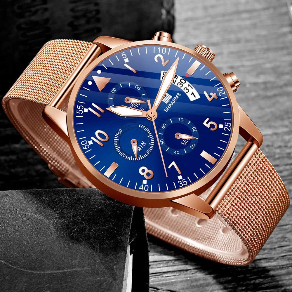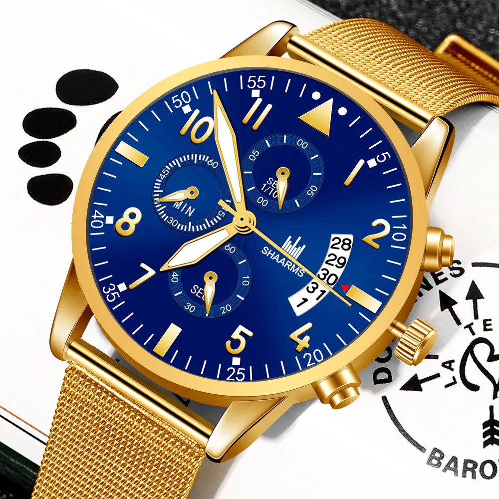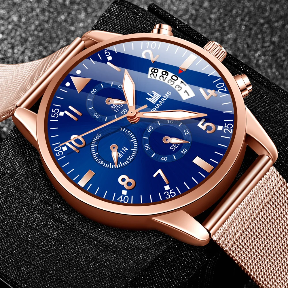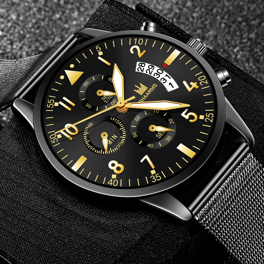 Часы мужские, знаменитый календарь, деловые, из нержавеющей стали, с сетчатым браслетом