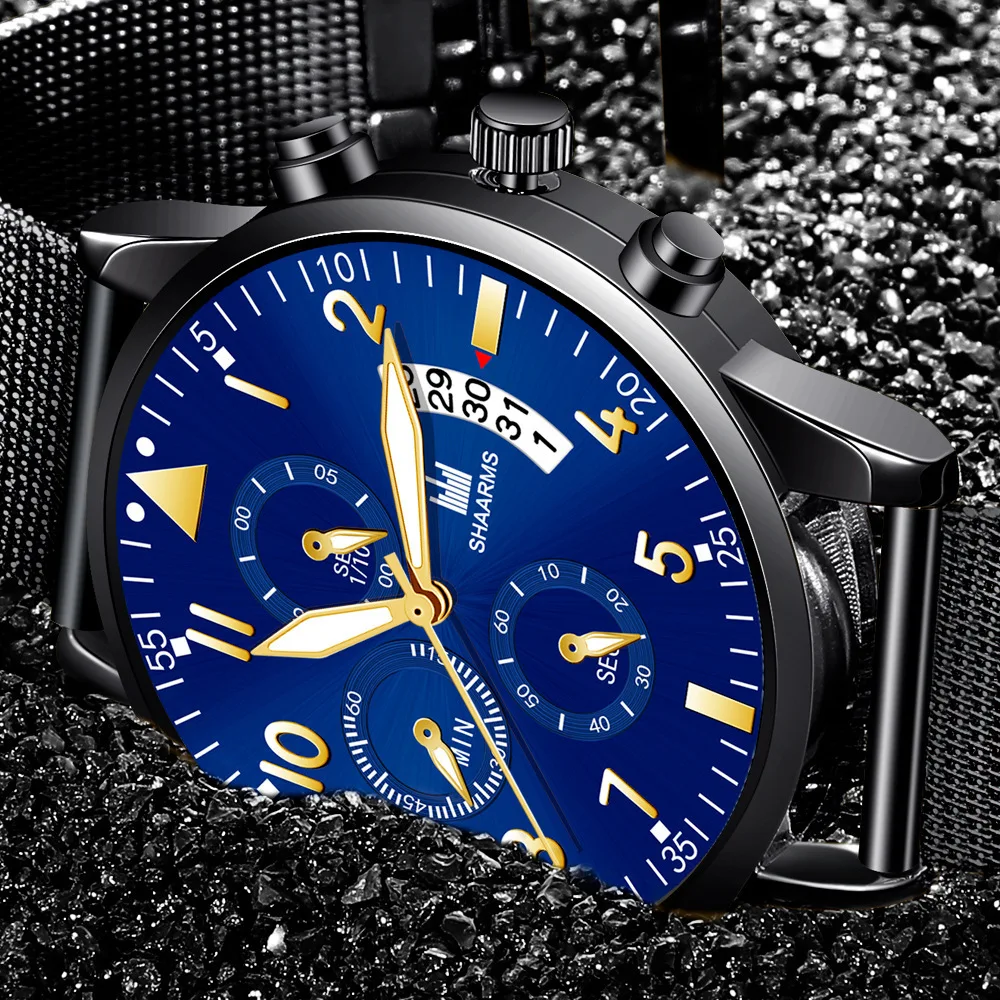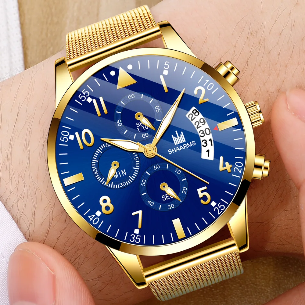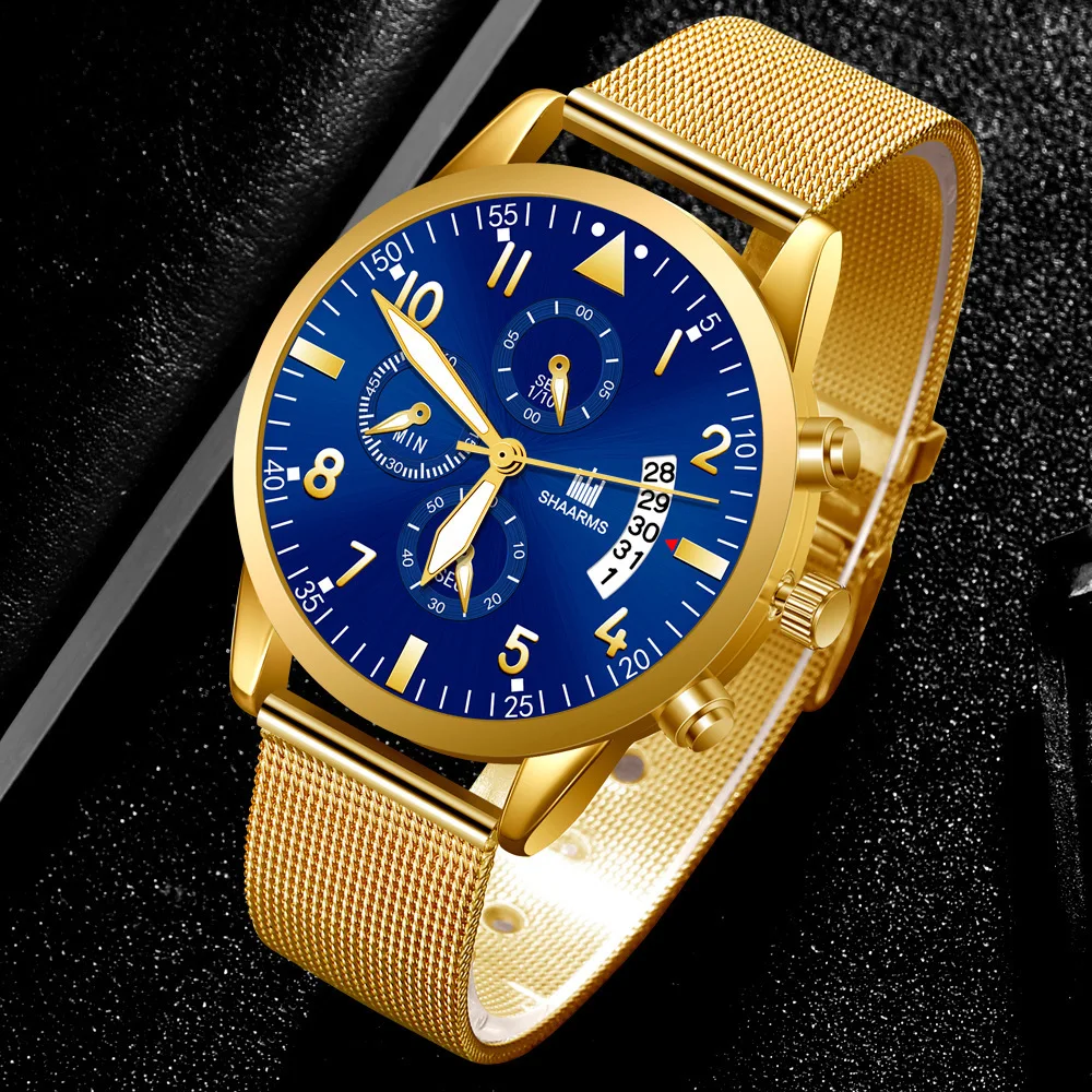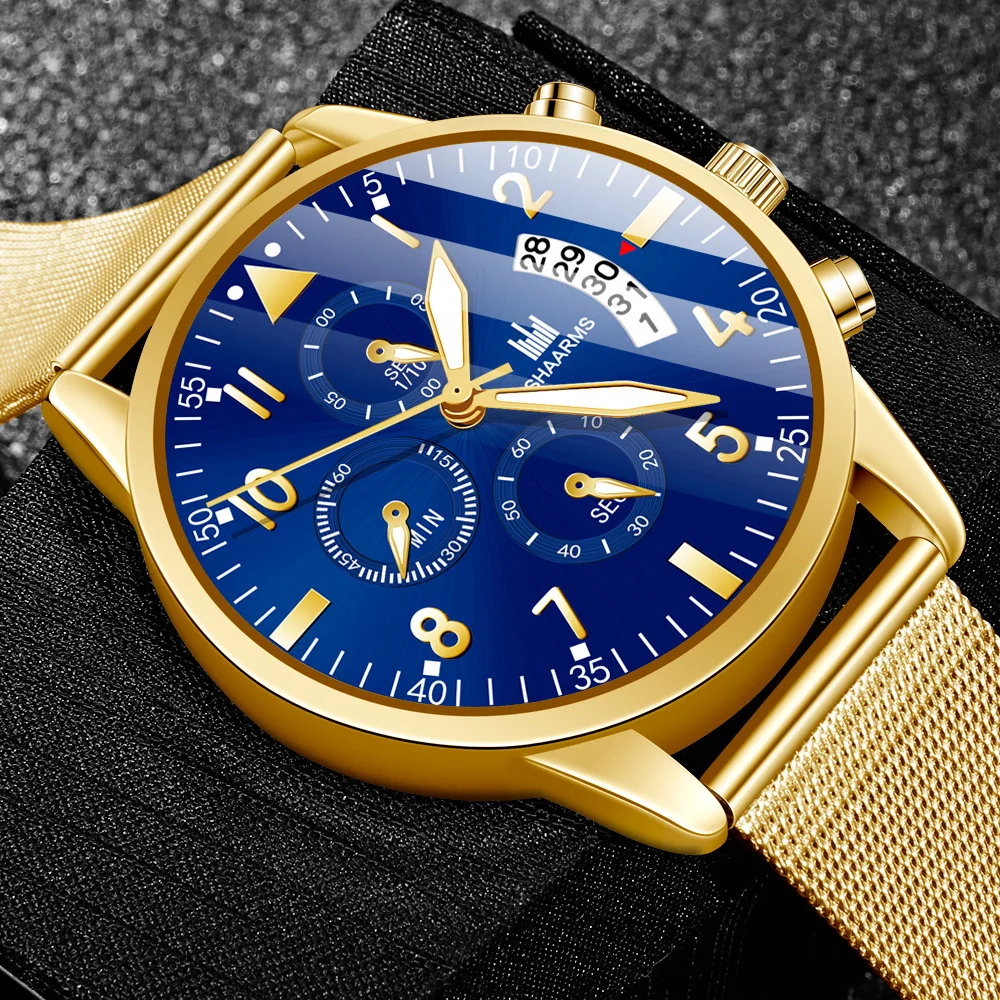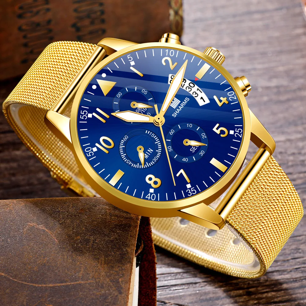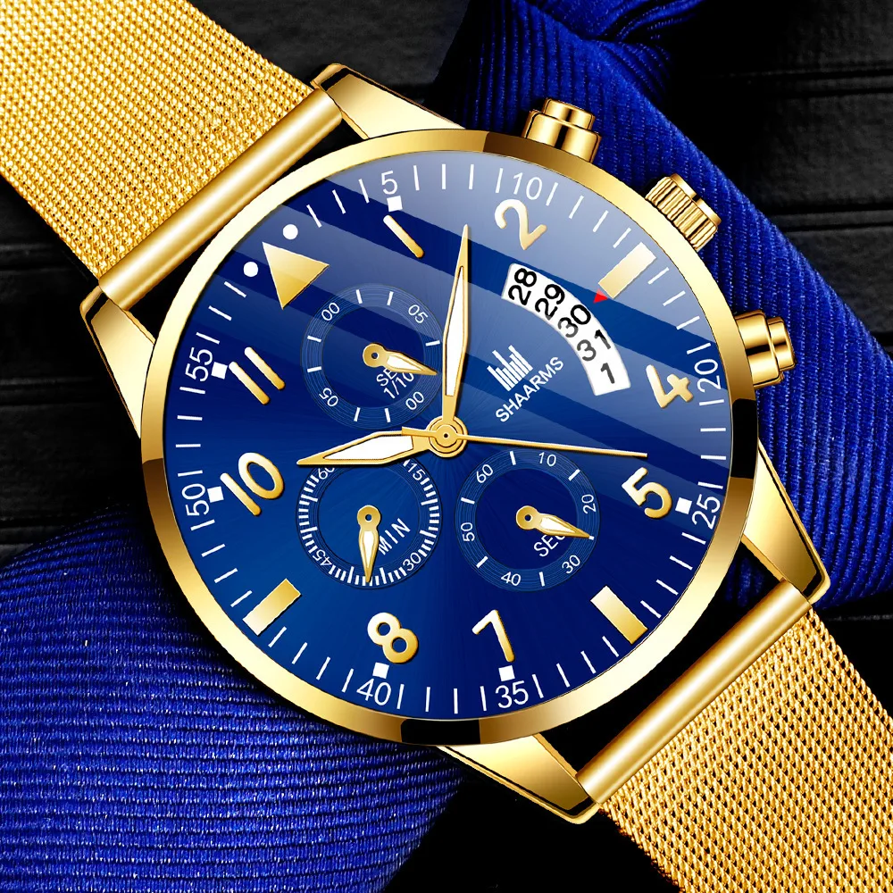 Часы мужские, знаменитый календарь, деловые, из нержавеющей стали, с сетчатым браслетом