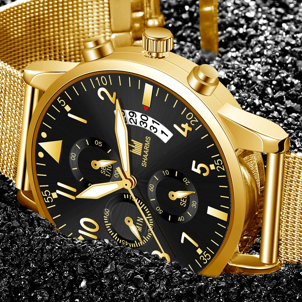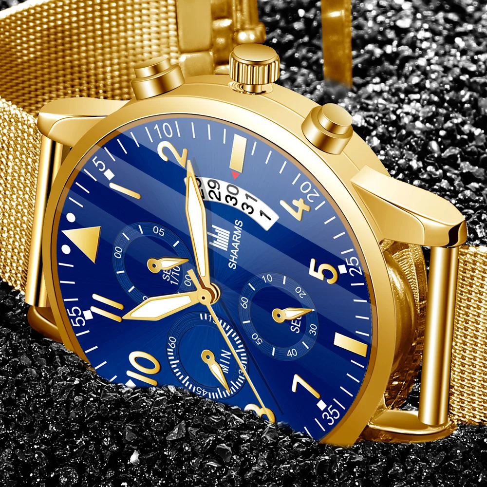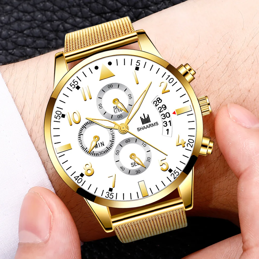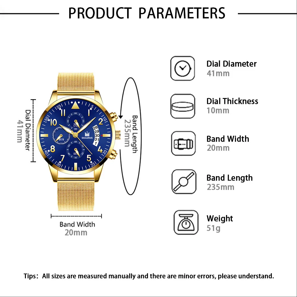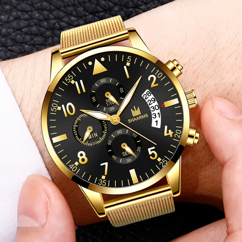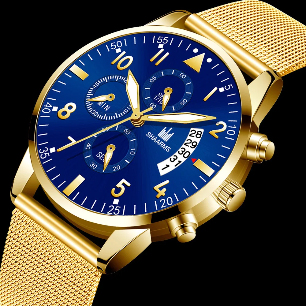 Часы мужские, знаменитый календарь, деловые, из нержавеющей стали, с сетчатым браслетом