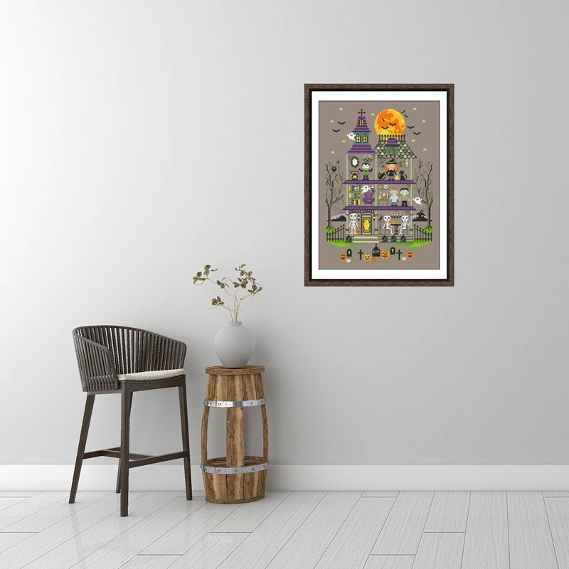 Наборы для вышивки крестиком с изображением дома с привидениями, ткань для Хэллоуина, 18 карат, 14 карат, 11 карат, холст с изображением кофе, наборы для вышивки хлопковыми нитями, набор для рукоделия сделай сам