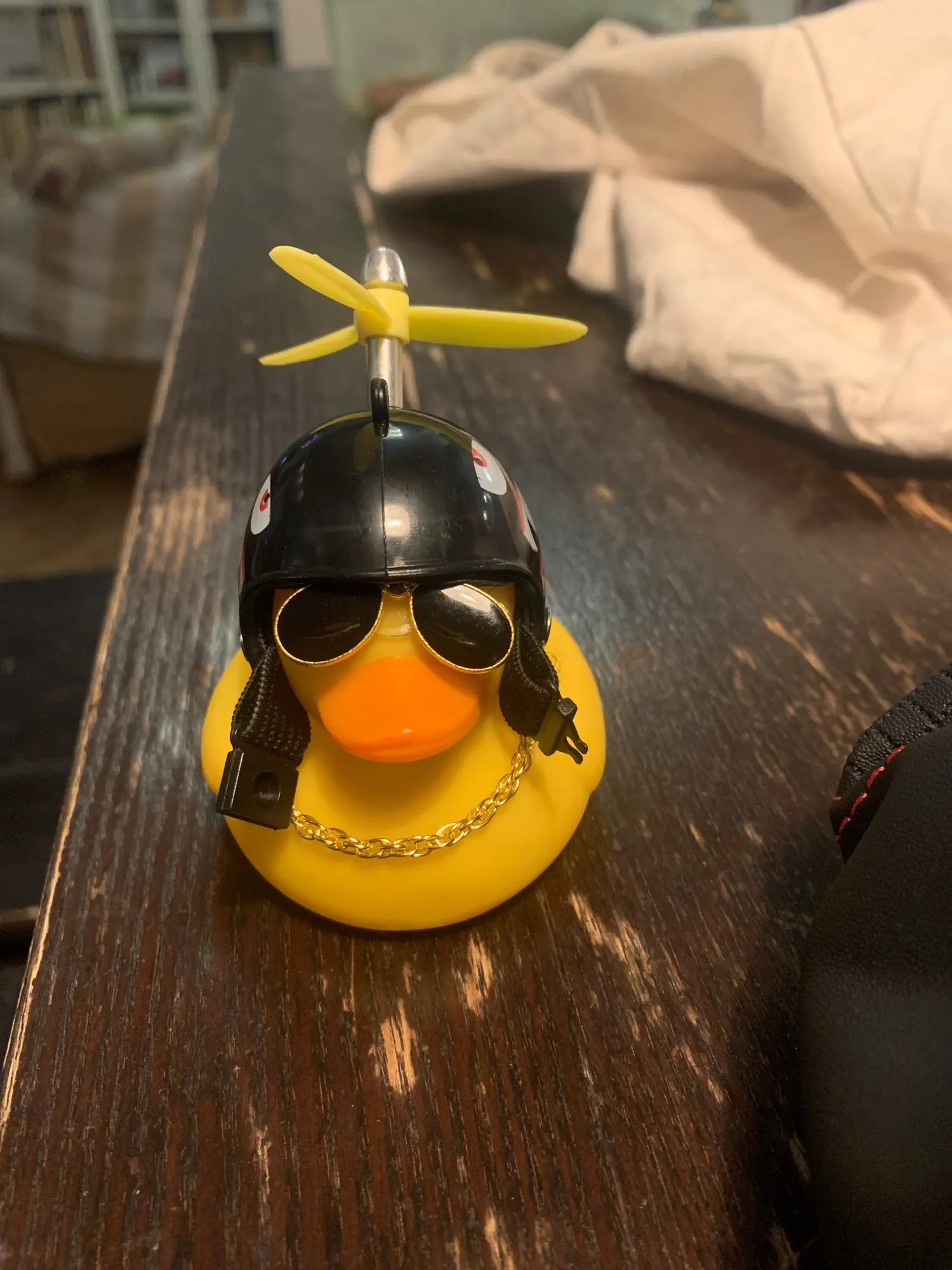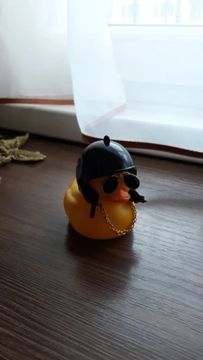 прикольная утка. не много размыт текст на шлеме. доставка месяц.
