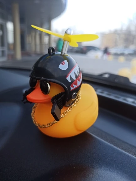 Украшение для автомобиля, резиновая утка с пропеллером в шлеме
