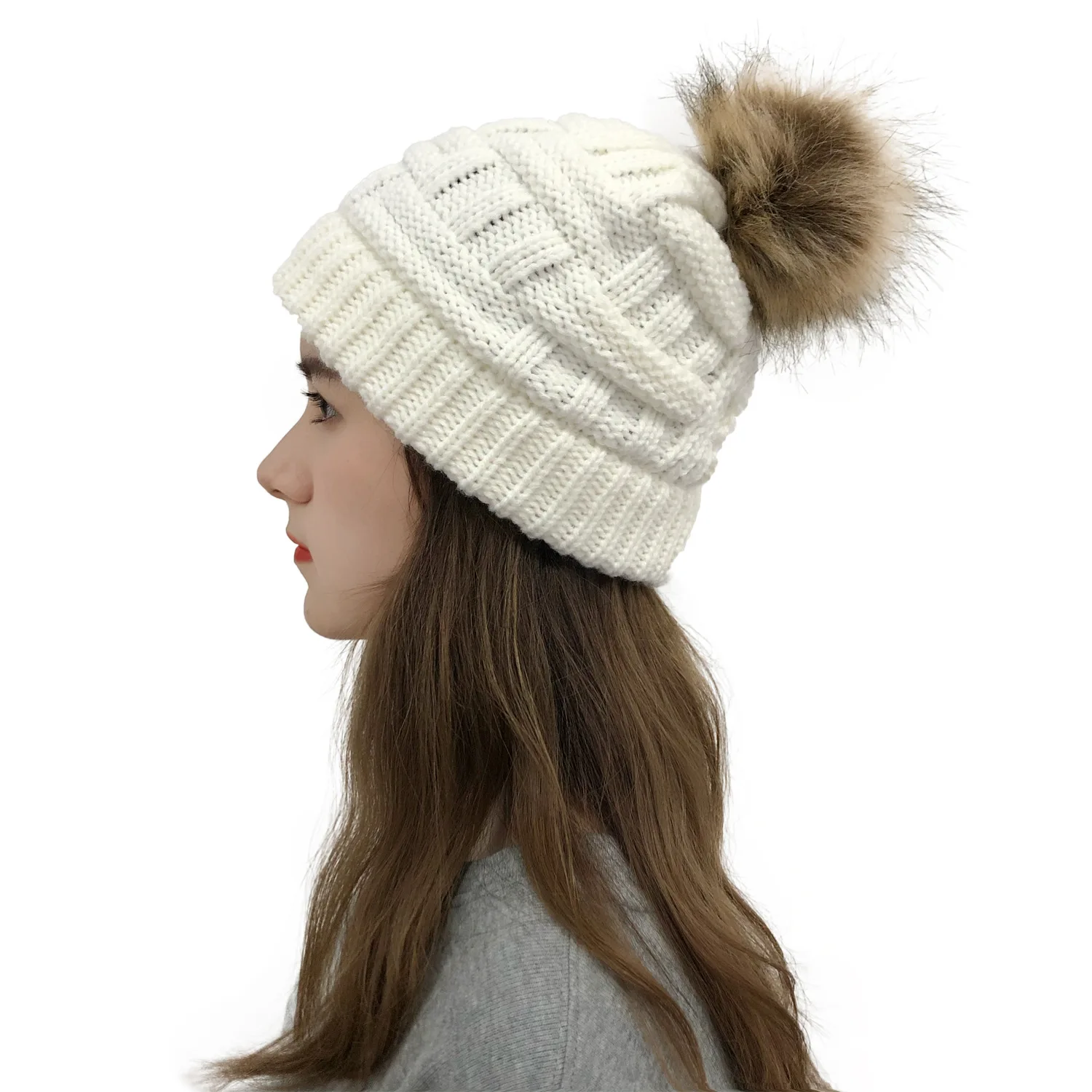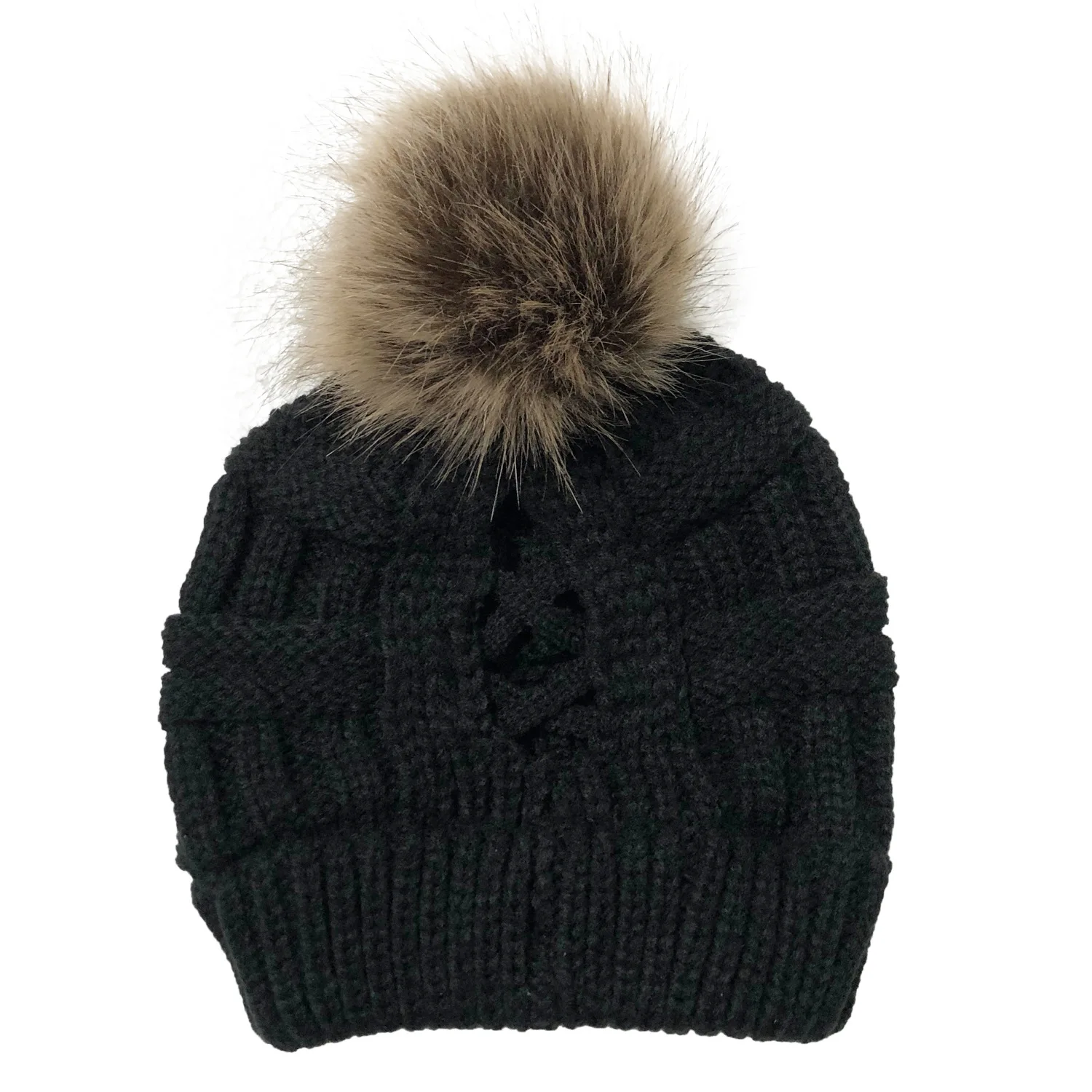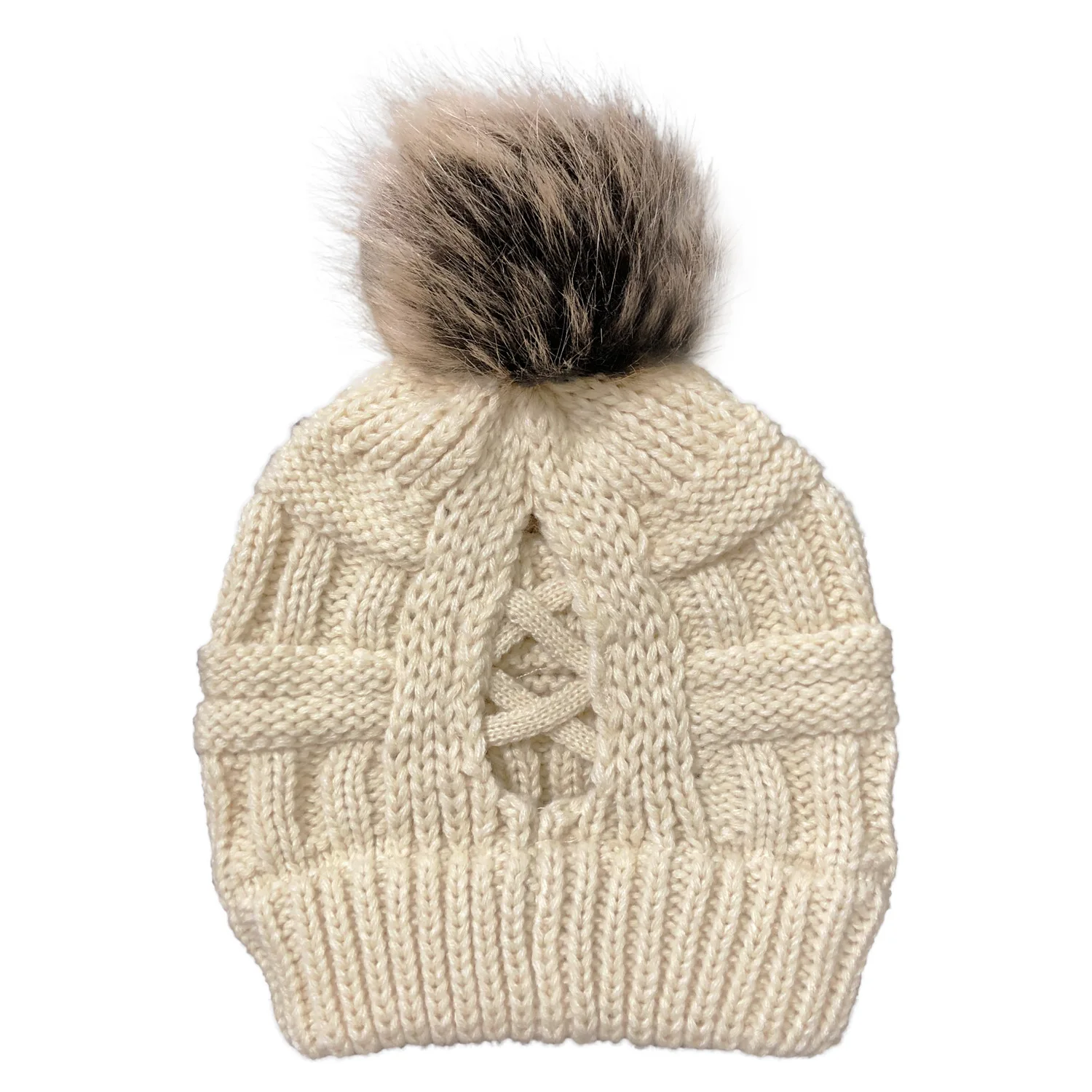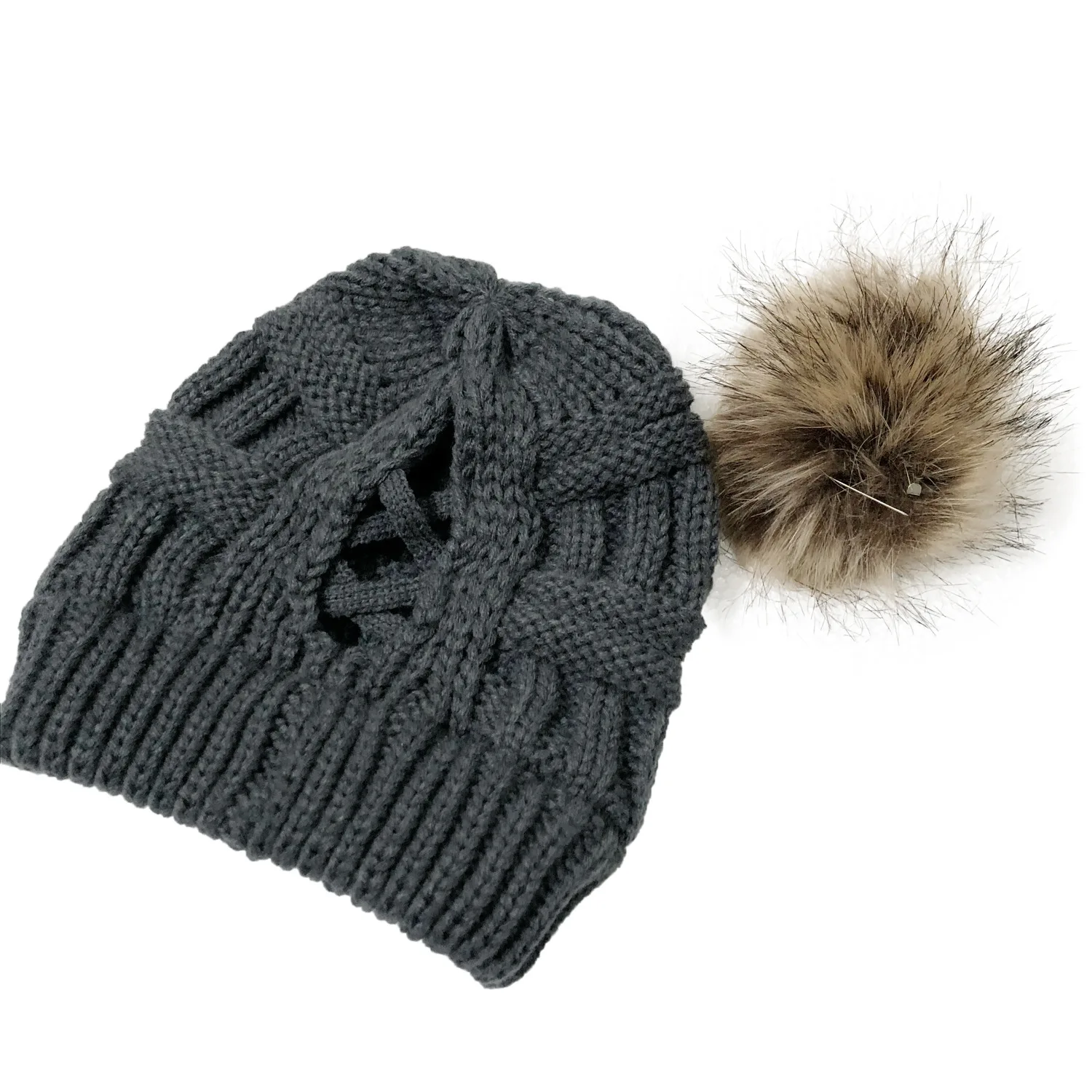 Эксклюзивная мягкая шапка бини с меховым помпоном женская вязаная зимняя шапка стрейчевая шапка для конского хвоста шапка для пучка волос вязаная шапка с напуском теплая шапка