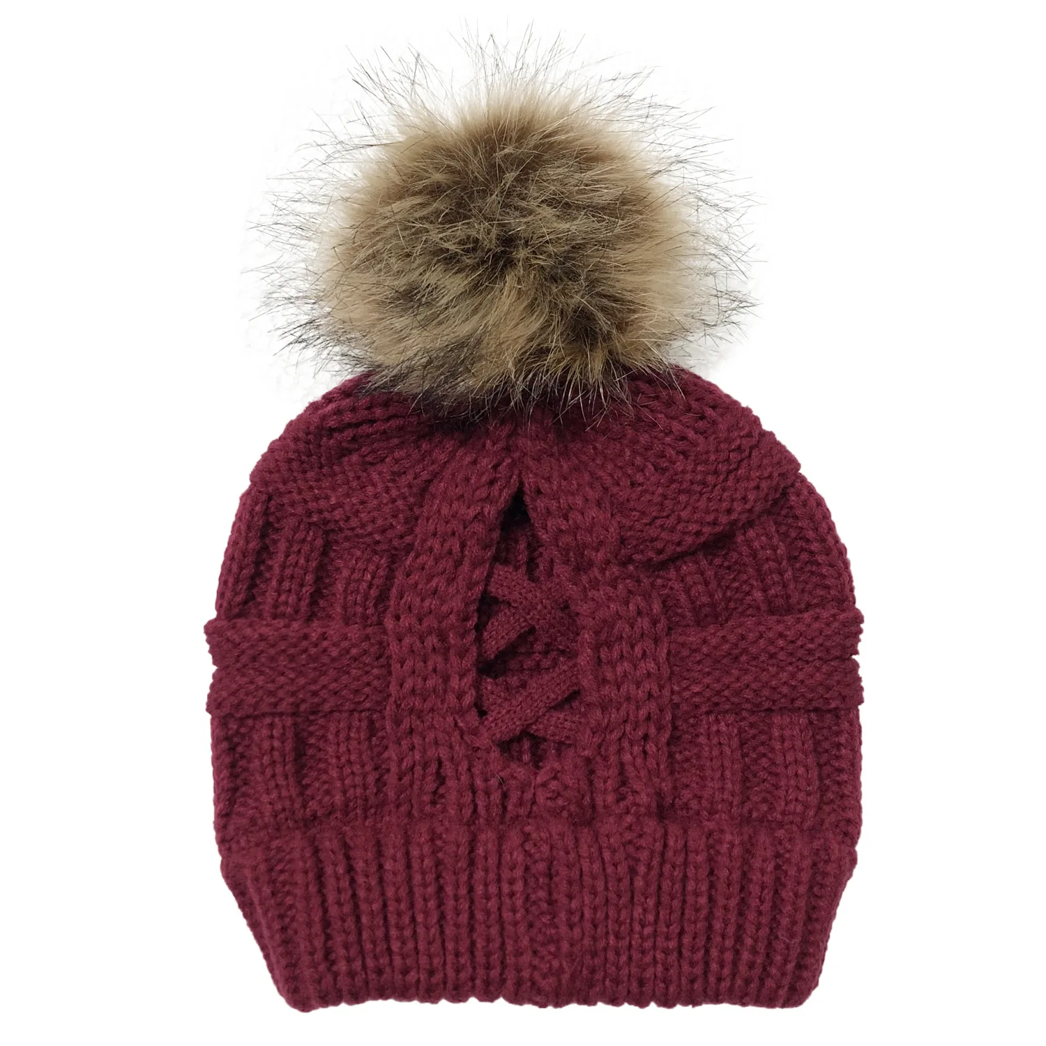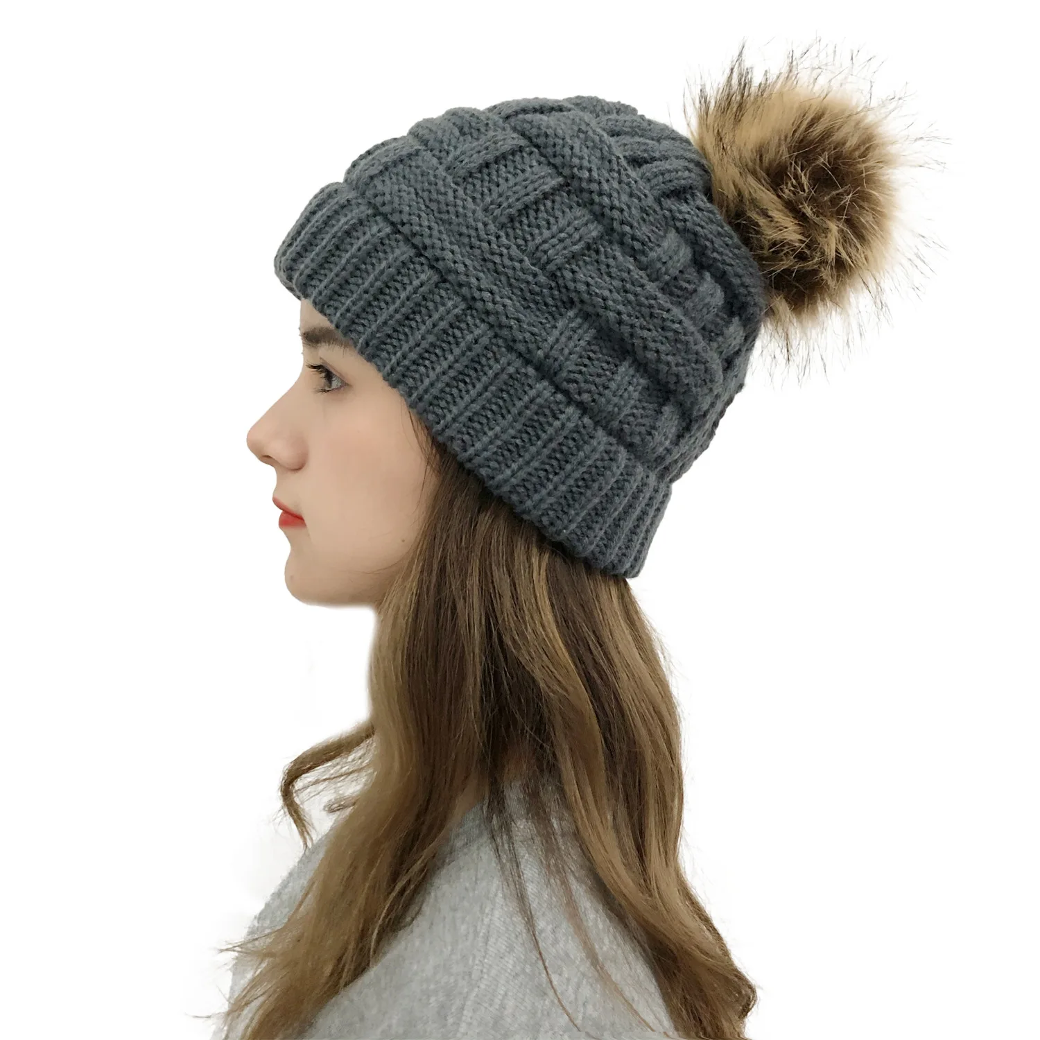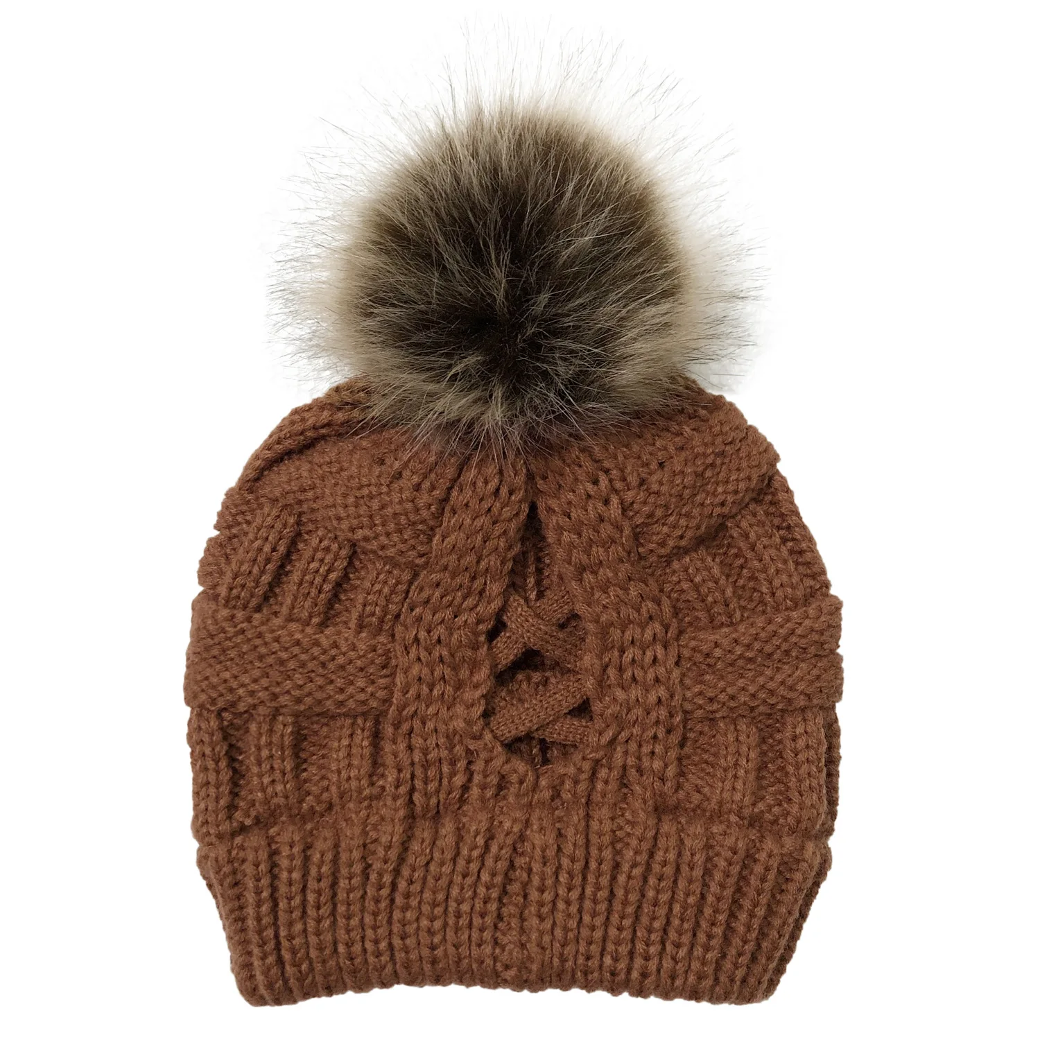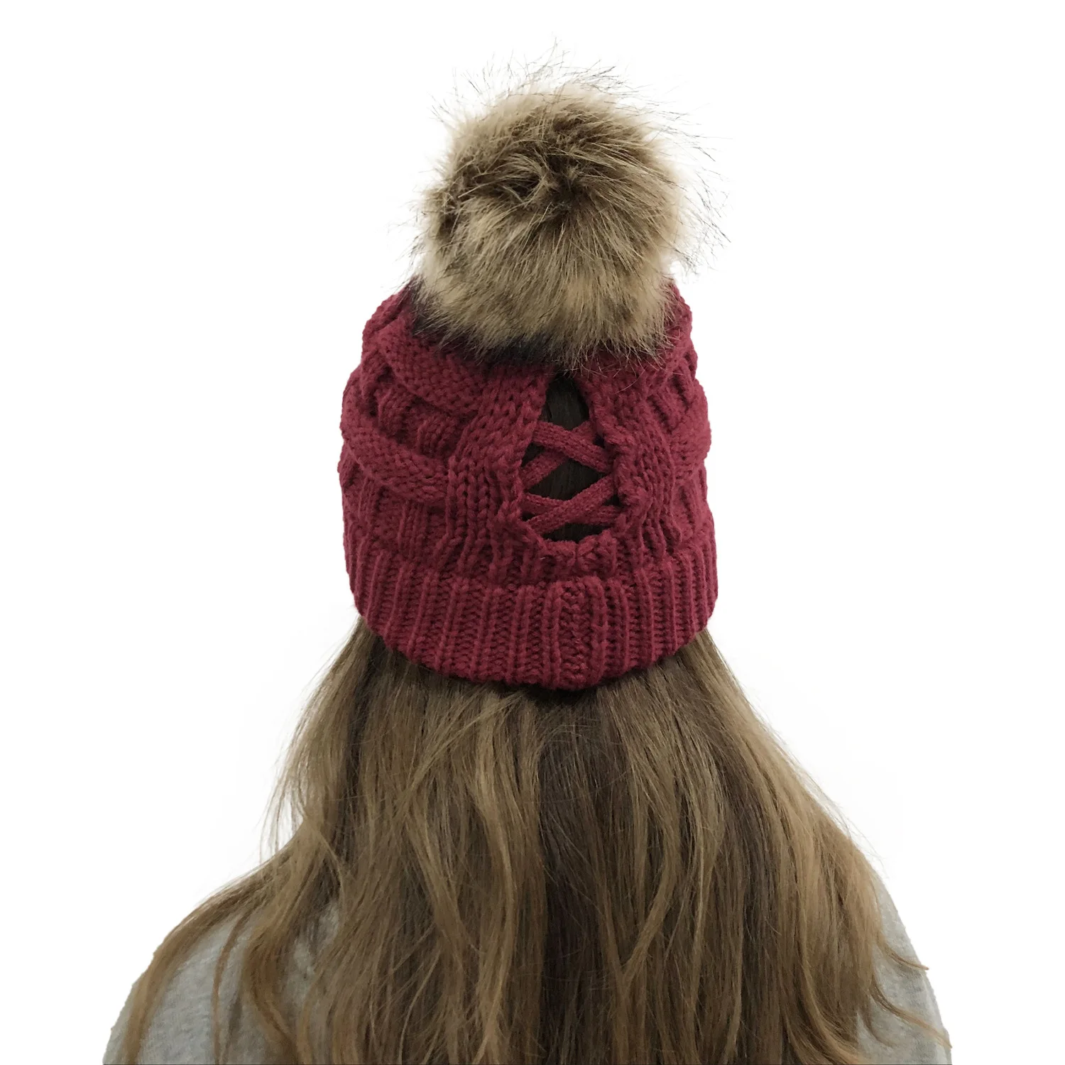 Эксклюзивная мягкая шапка бини с меховым помпоном женская вязаная зимняя шапка стрейчевая шапка для конского хвоста шапка для пучка волос вязаная шапка с напуском теплая шапка