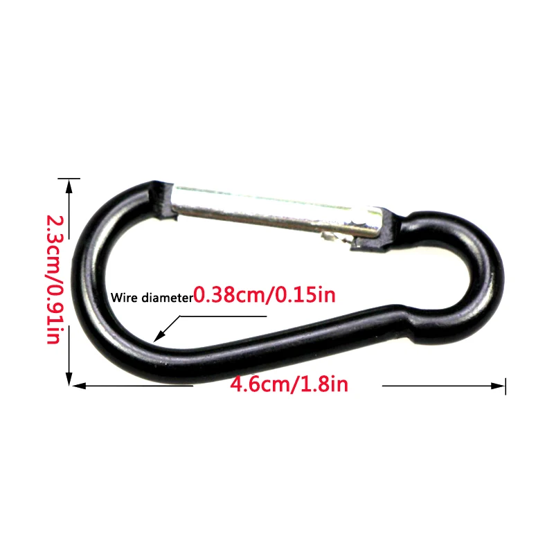 10 шт. карабин для альпинизма, походный крюк для кемпинга, для спорта на открытом воздухе, много цветов, алюминиевая безопасная Пряжка, брелок Информация о продукте: Карабин изготовлен из высококачественного и прочного легкого авиационного алюминиевого материала, прочный и практичный. Более прочный, Мощный маленький карабин, легкий, безопасный и удобный. Идеально подходит для активного отдыха, таких как кемпинг, рыбалка, туризм, путешествия, брелки, багаж, игрушки, чайники, рюкзаки и т. д. (Этот продукт не подходит для альпинизма). Характеристики (прибл.): Диаметр проволоки: 0,38 см/0,14 дюйма Длина: 4,6 см/1.8in Вес: около 3,1 г. Упаковочный лист:10 шт. карабин