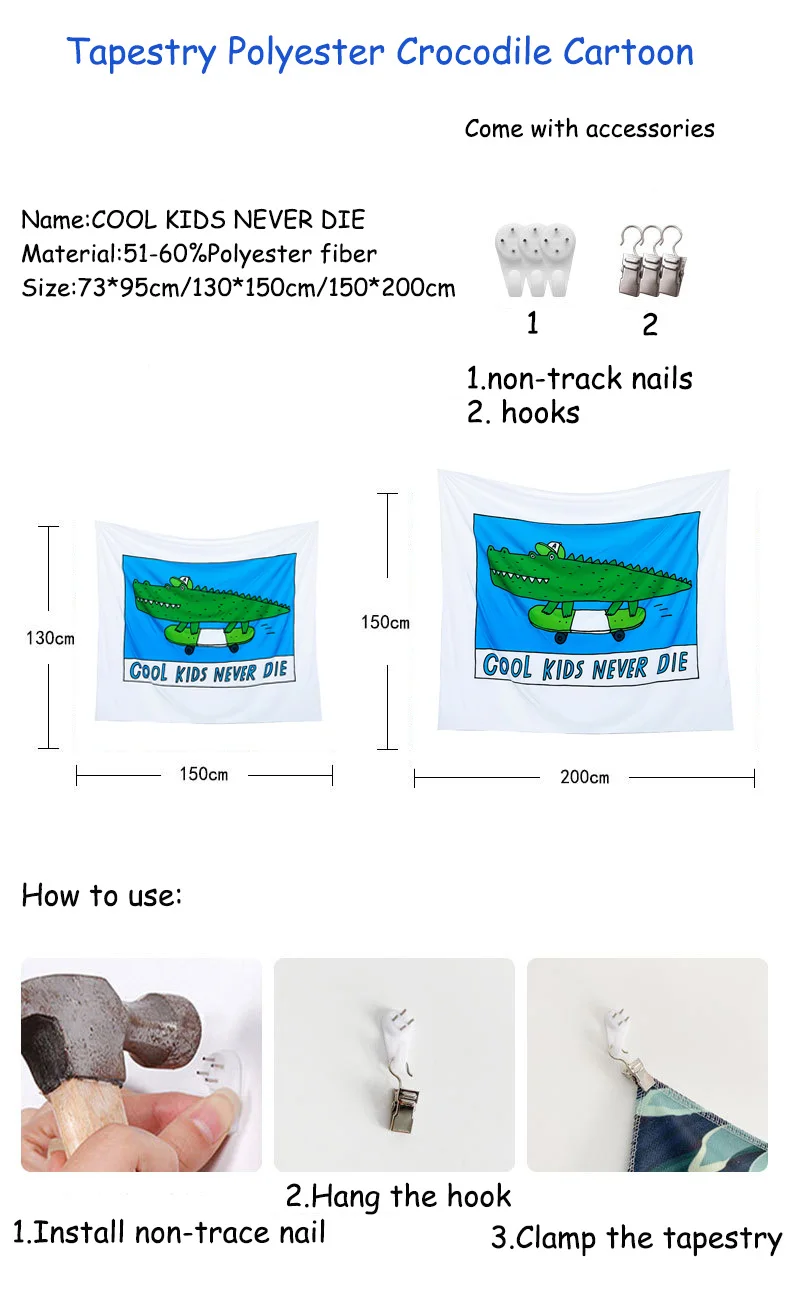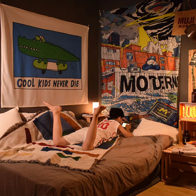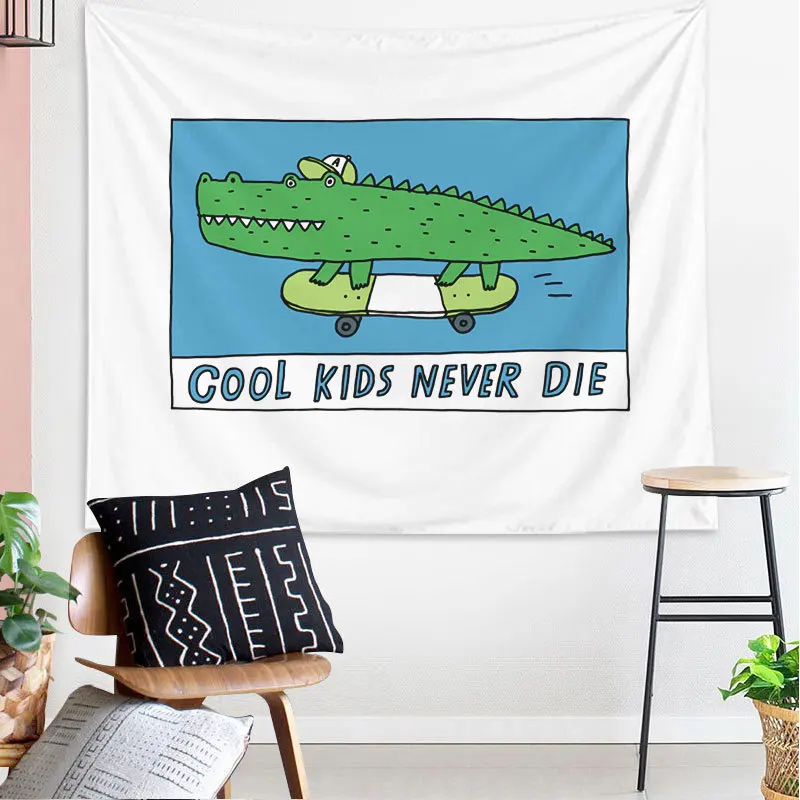 С нарисованным крокодилом, гобелен полиэстер крутые Детские никогда не умирает настенный штора-гобелен Ins красочные домашнего декора гостиной украшения
