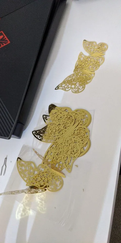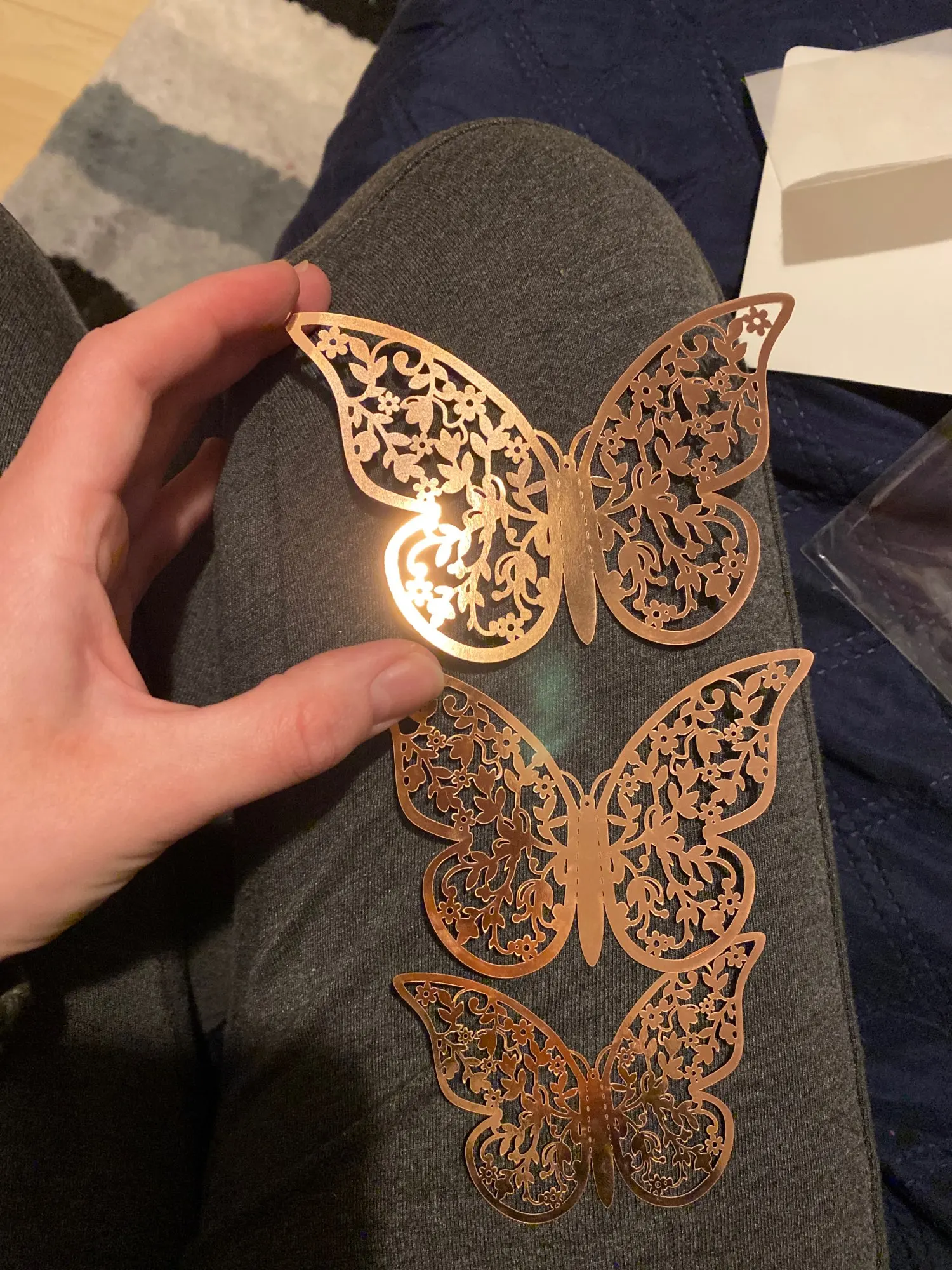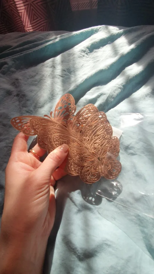 motylki są śliczne, mają piękny kształt. wykonane w wysokiej jakości. Bardzo gorąco polecam. Warto było zainwestować te kilka złotych. Mogą służyć jako dekoracja ściany ale też kartki urodzinowej.