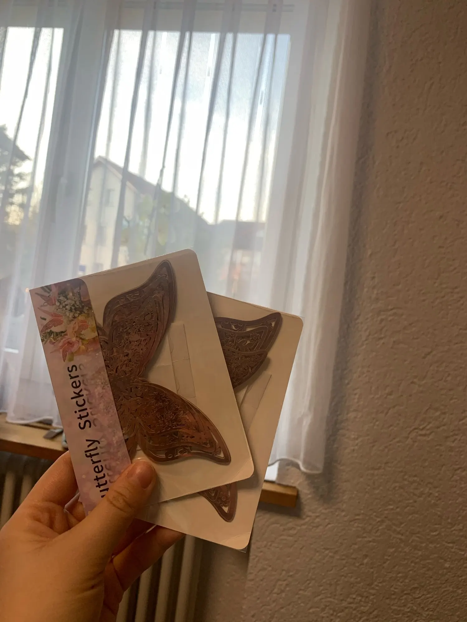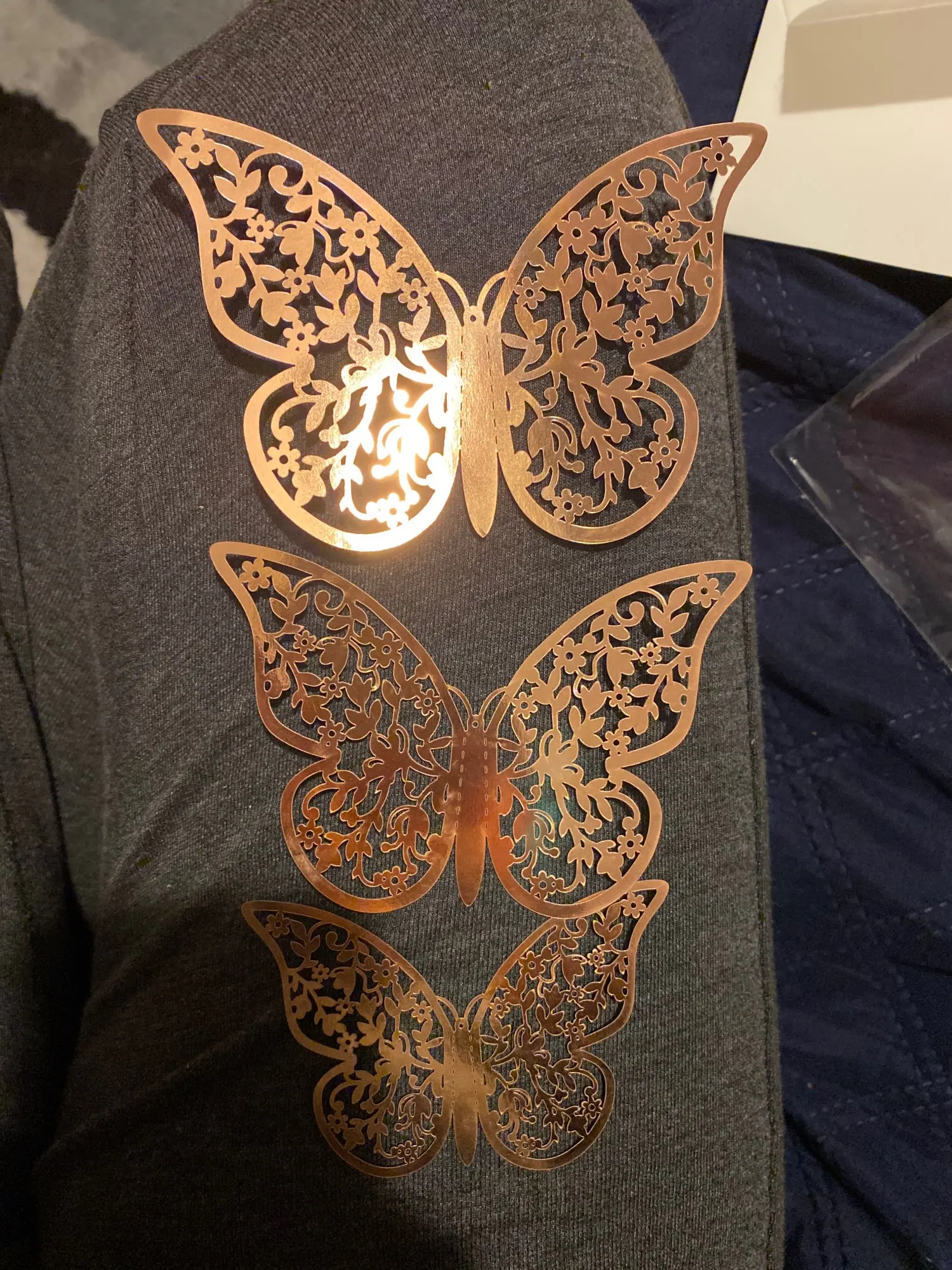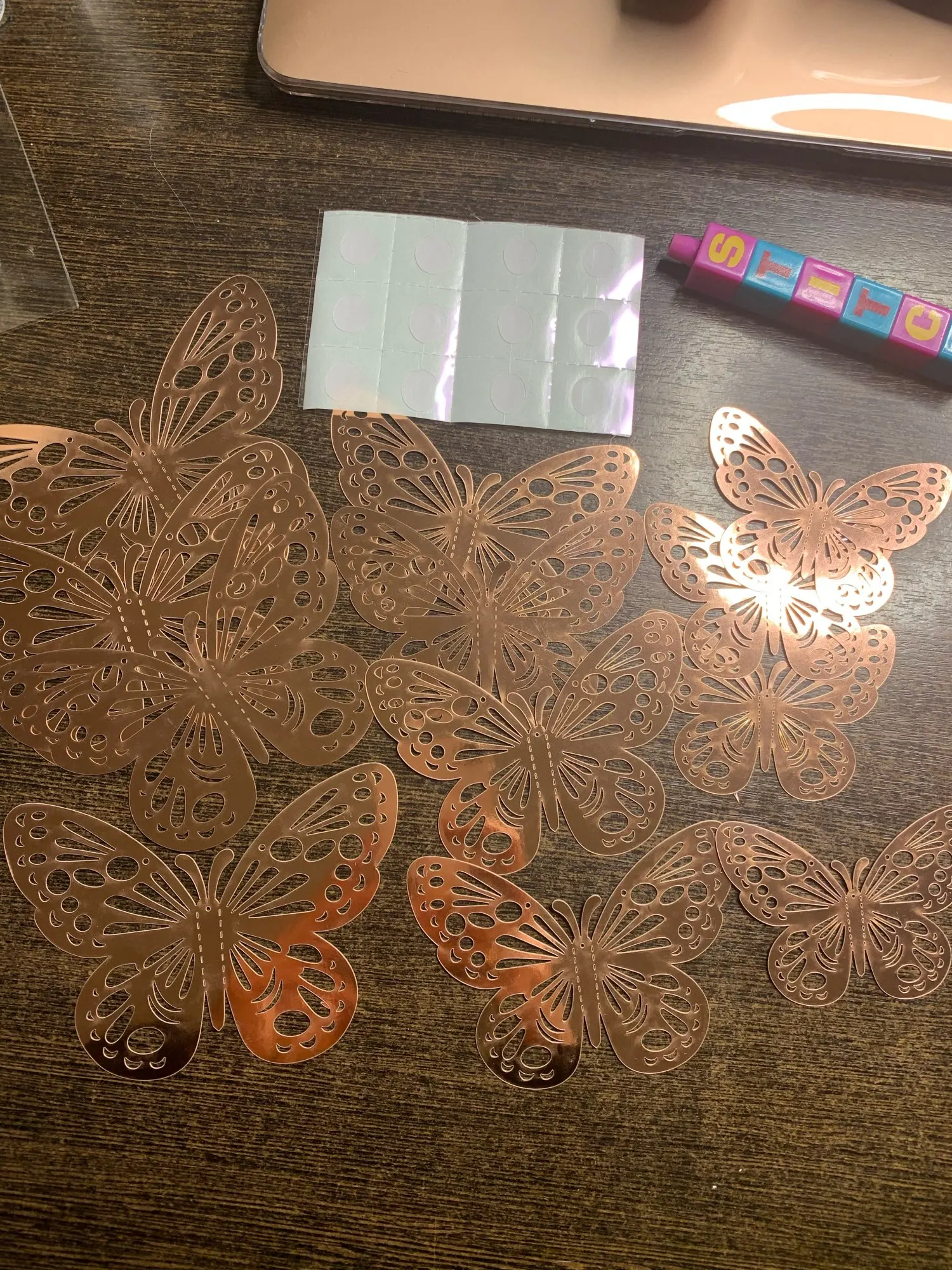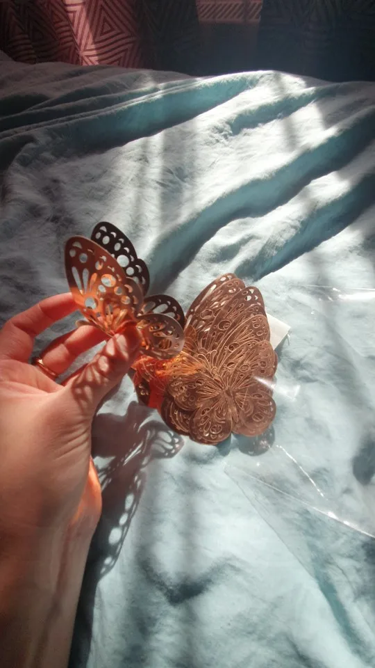 Симпотичные бабочки, но клейкая основа плохо их держит отваливаются. Попробую на двухсторонний скотч....