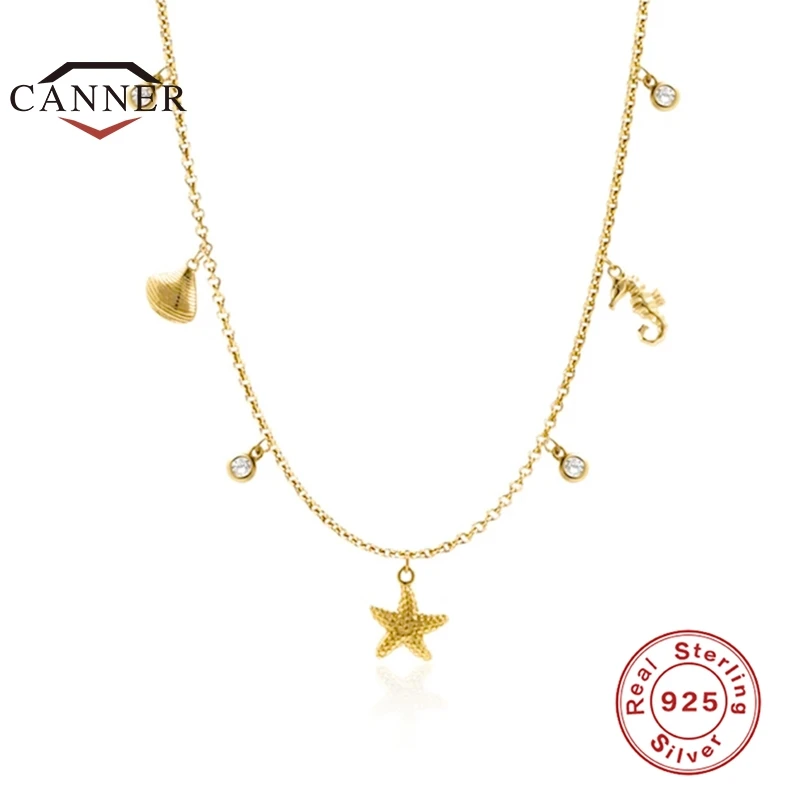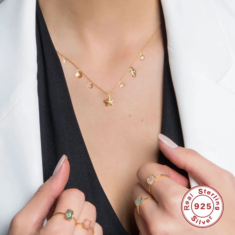Автоклав реальные 925 стерлингового серебра в европейском и американском стиле; Новые звезды в виде ракушки Кулон Циркон ожерелье для женщин, хорошее ювелирное изделие, ожерелье