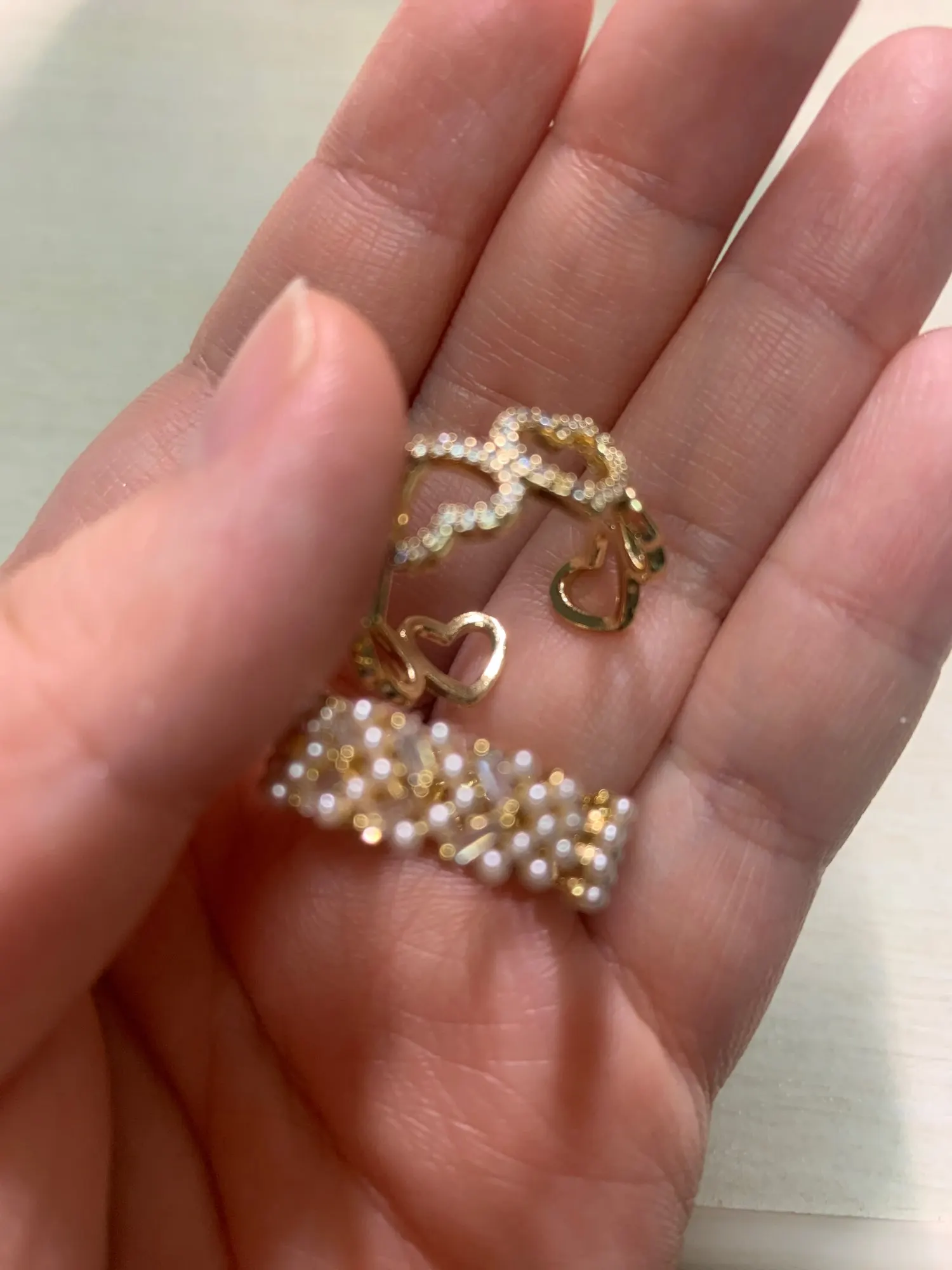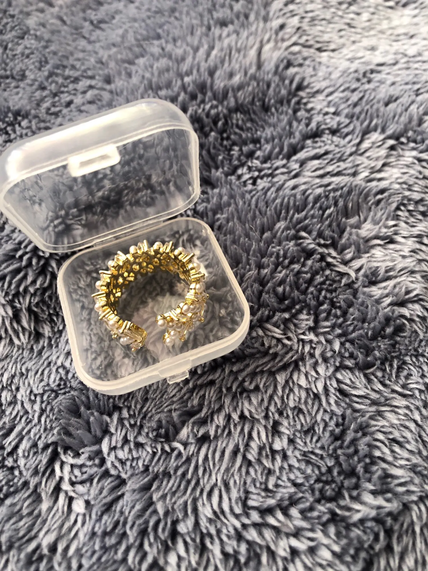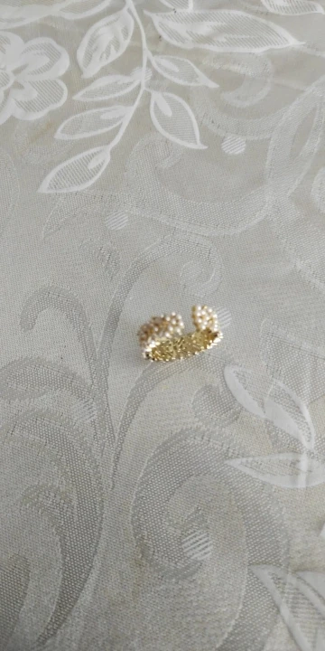 Колечко очень красивое, я даже не ожидала за такую стоимость такое высокое качество. Есть и камушки, и жемчужные бусинки. Смотрится эффектно и не аляповато. Подходит на несколько пальцев, потому что размер не фиксированный - это очень удобно. Цвет металла жёлтый, но не противный. Трек номер отслеживался.
