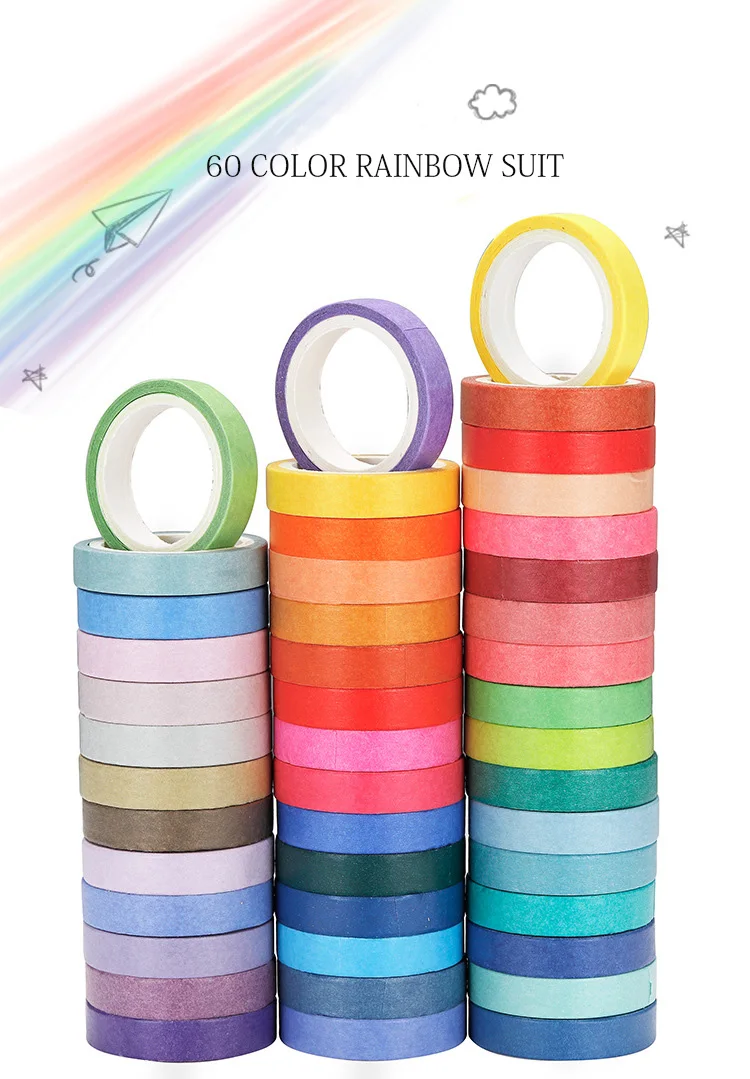 60 шт.компл. Базовая однотонная васи лента Радужная Маскировочная лента для дневника скрапбукинга декоративная клейкая лента стикер подарок Канцтовары