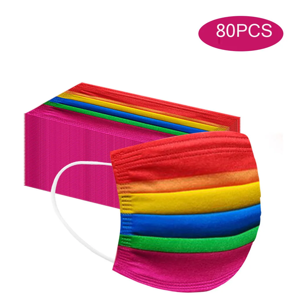 50 шт. одноразовая маска для лица с принтом радуги, дышащая маска д...