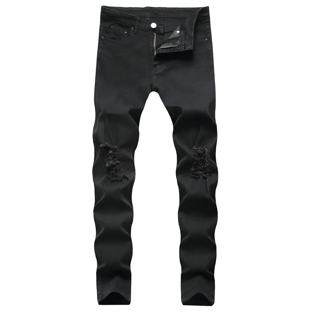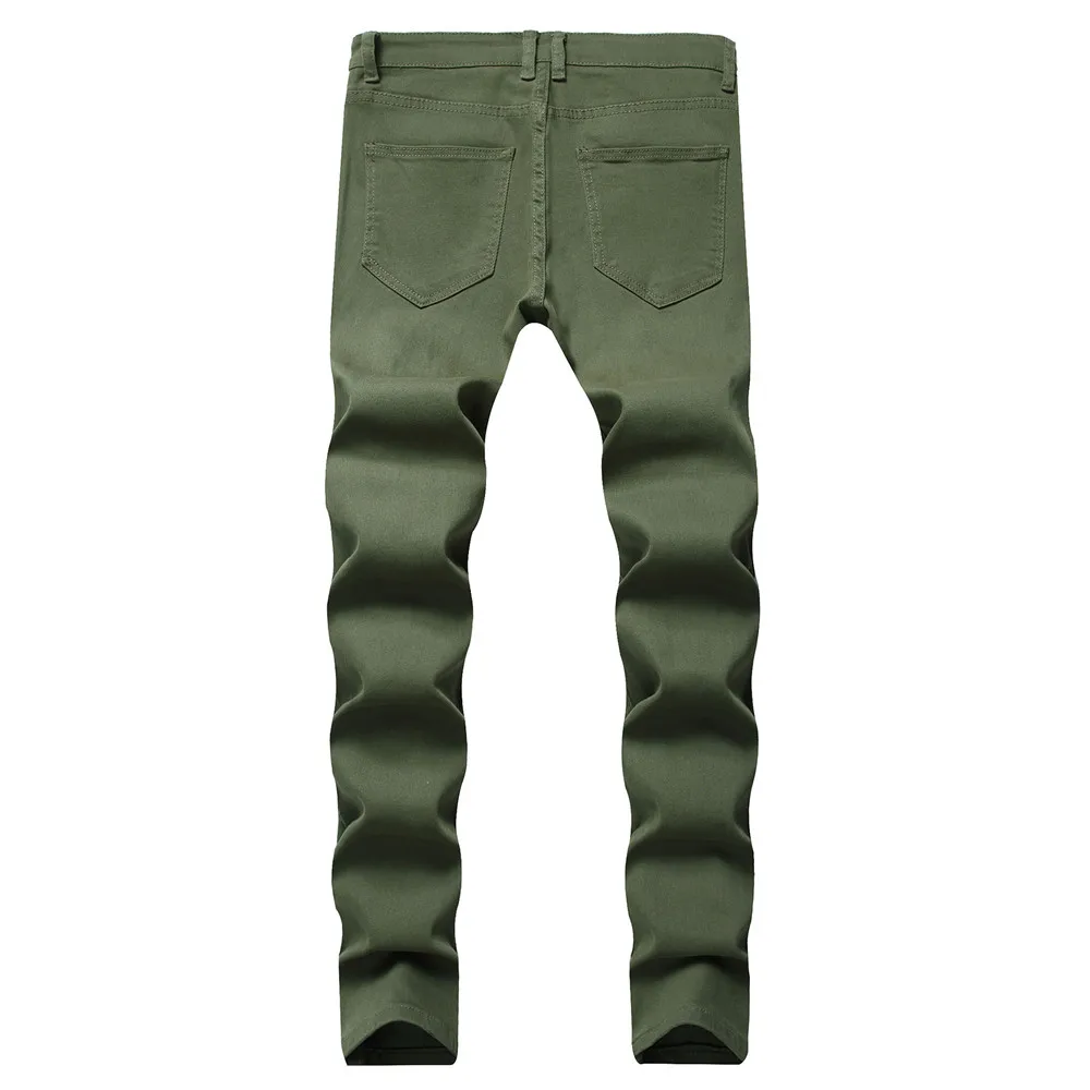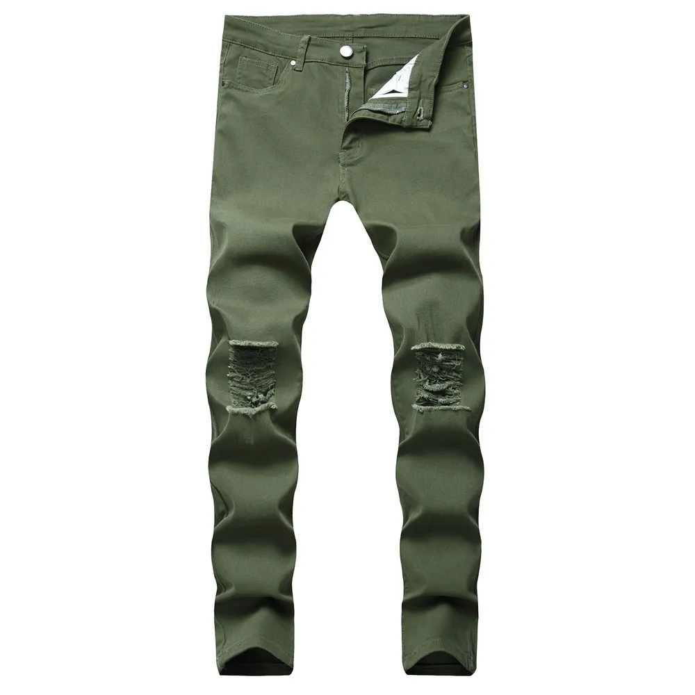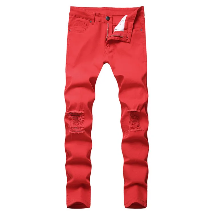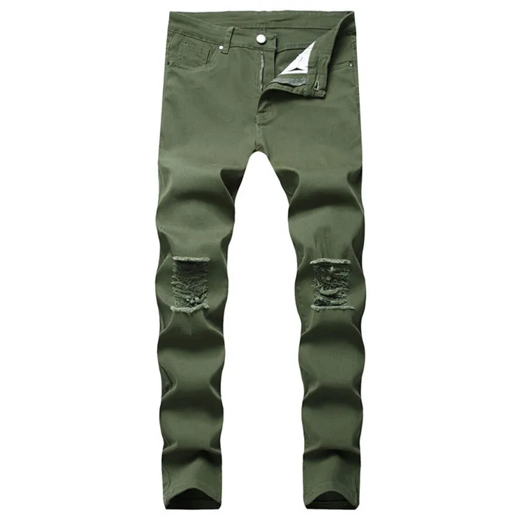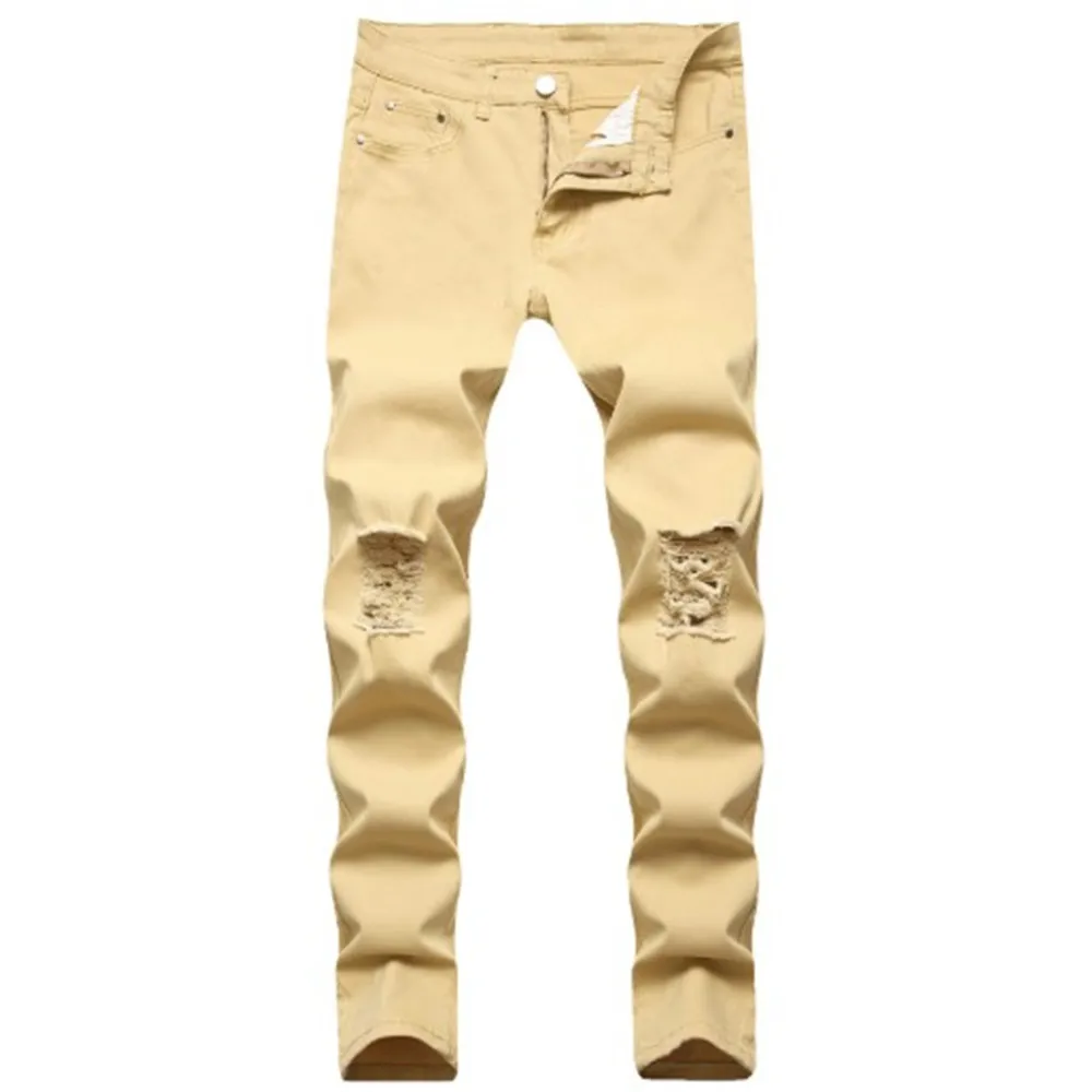 Джинсы мужские рваные стрейчевые, летние брюки с вырезами, 5 цветов, облегающие повседневные брюки из денима, модные мотоциклетные джинсы