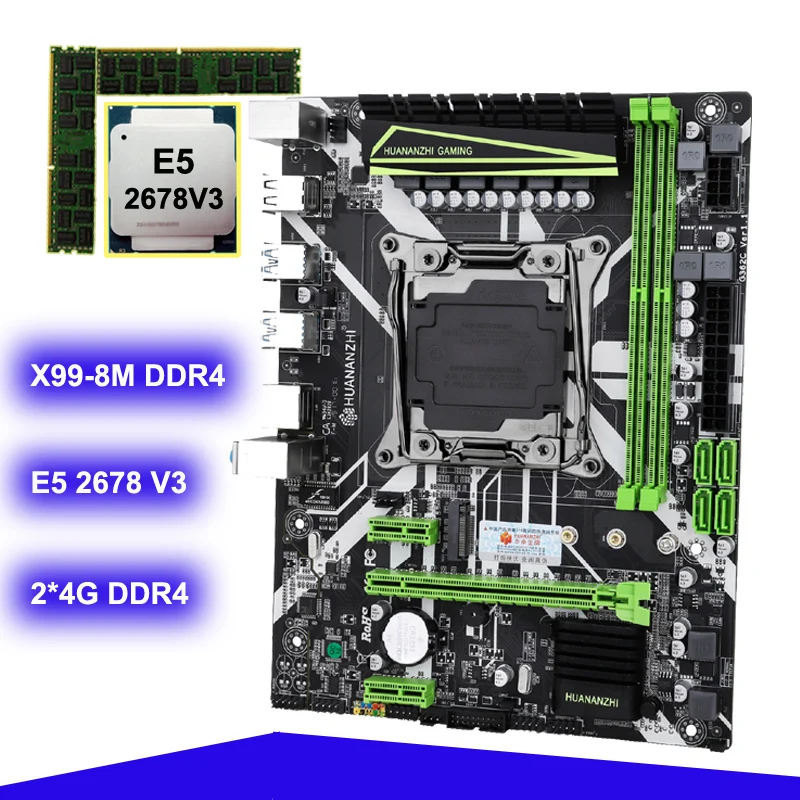 HUANANZHI X99-8M M-ATX материнская плата с NVMe слот SSD Xeon E5 2678 V3 от известного бренда Оперативная память 8 ГБ (2*4G) DDR4 rec подбирается по заказу сделай сам