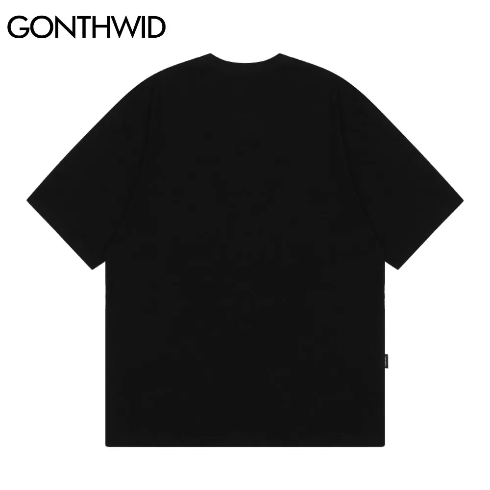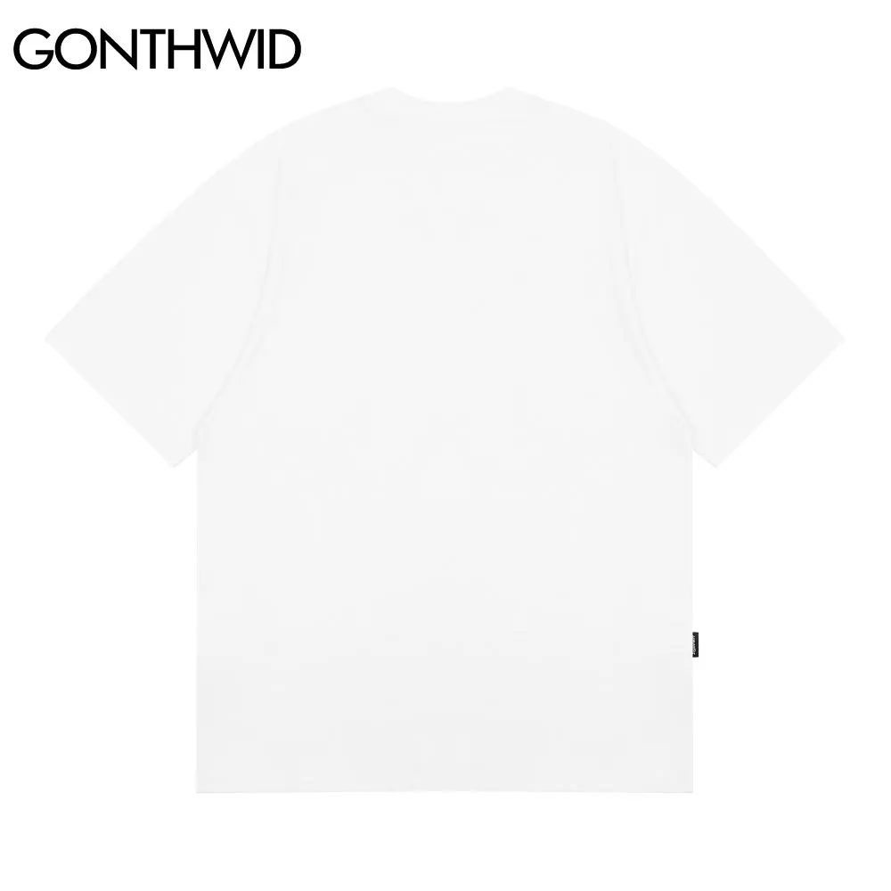 Футболка GONTHWID мужская с принтом граффити, хлопковая рубашка с коротким рукавом, уличная одежда, повседневный Свободный Топ в стиле Харадзюку, хип-хоп, лето