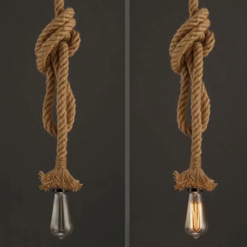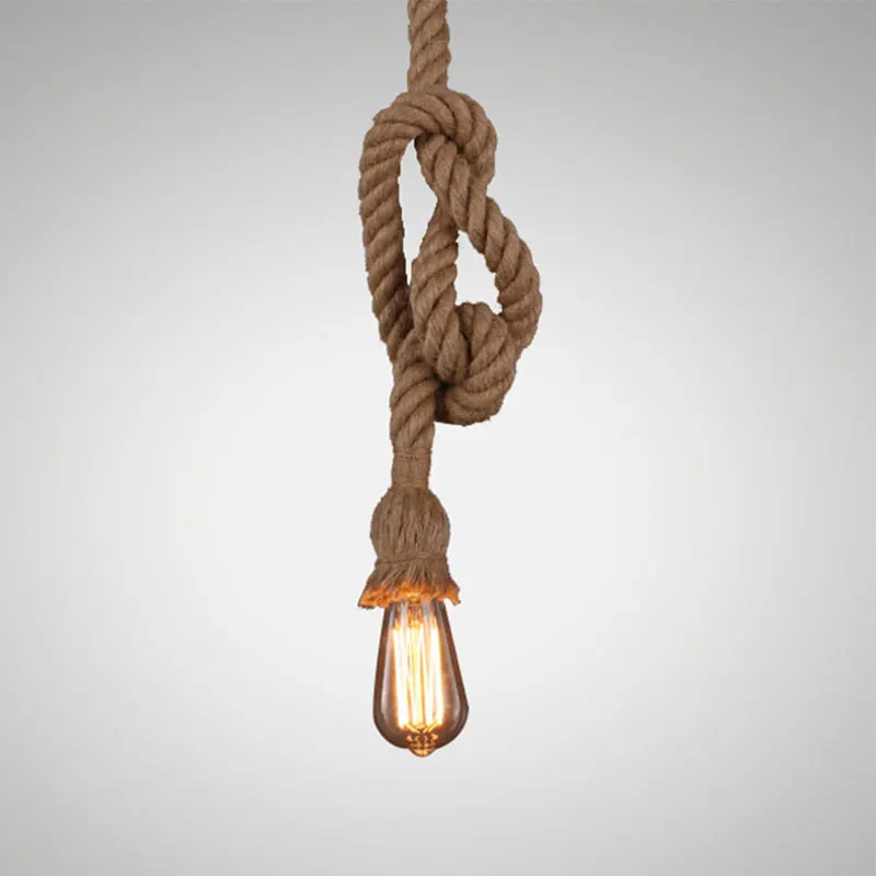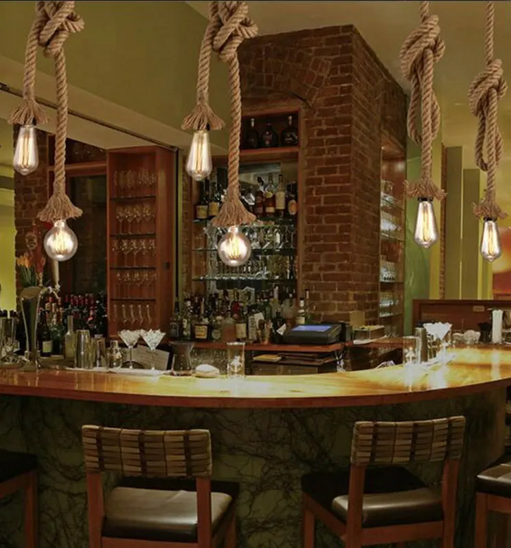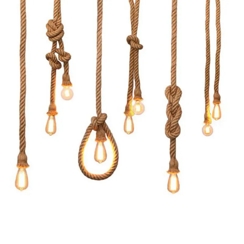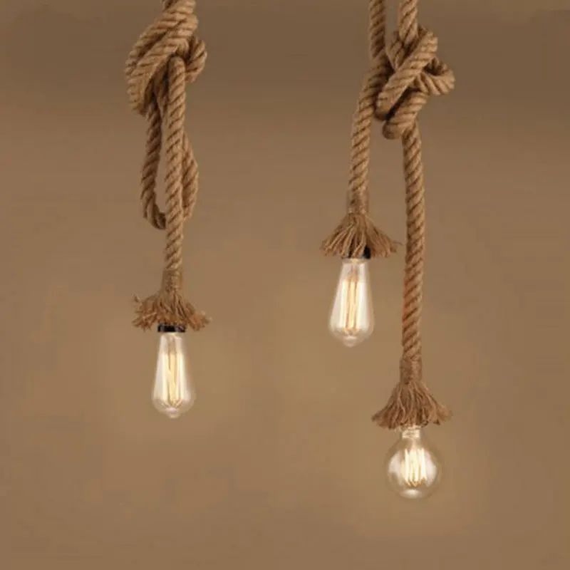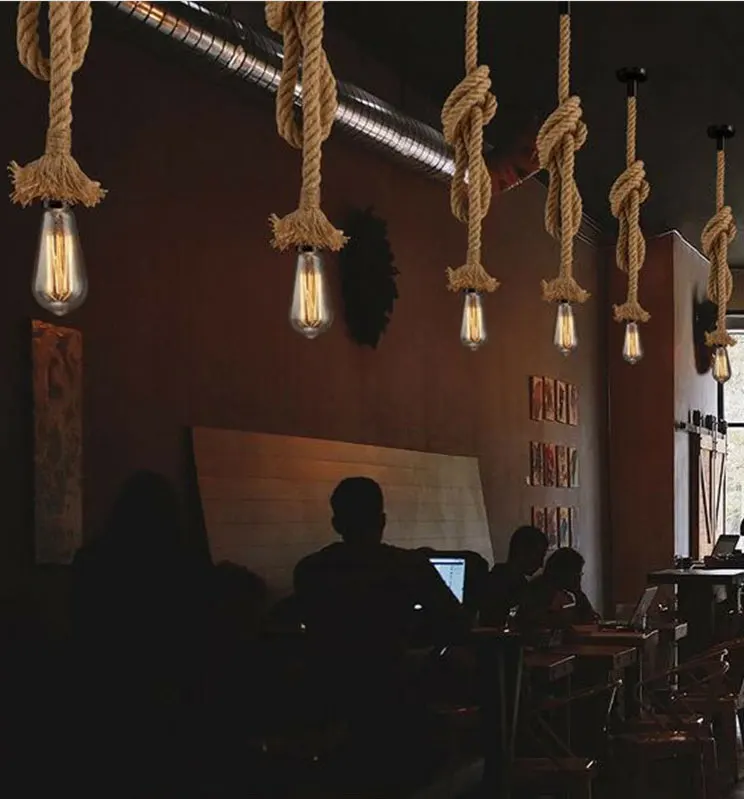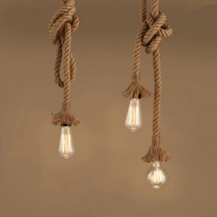 Винтажный подвесной светильник из пеньковой веревки, потолочный светильник в стиле ретро, лофт, индастриал, лампочка эдисона, домашнее декоративное освещение