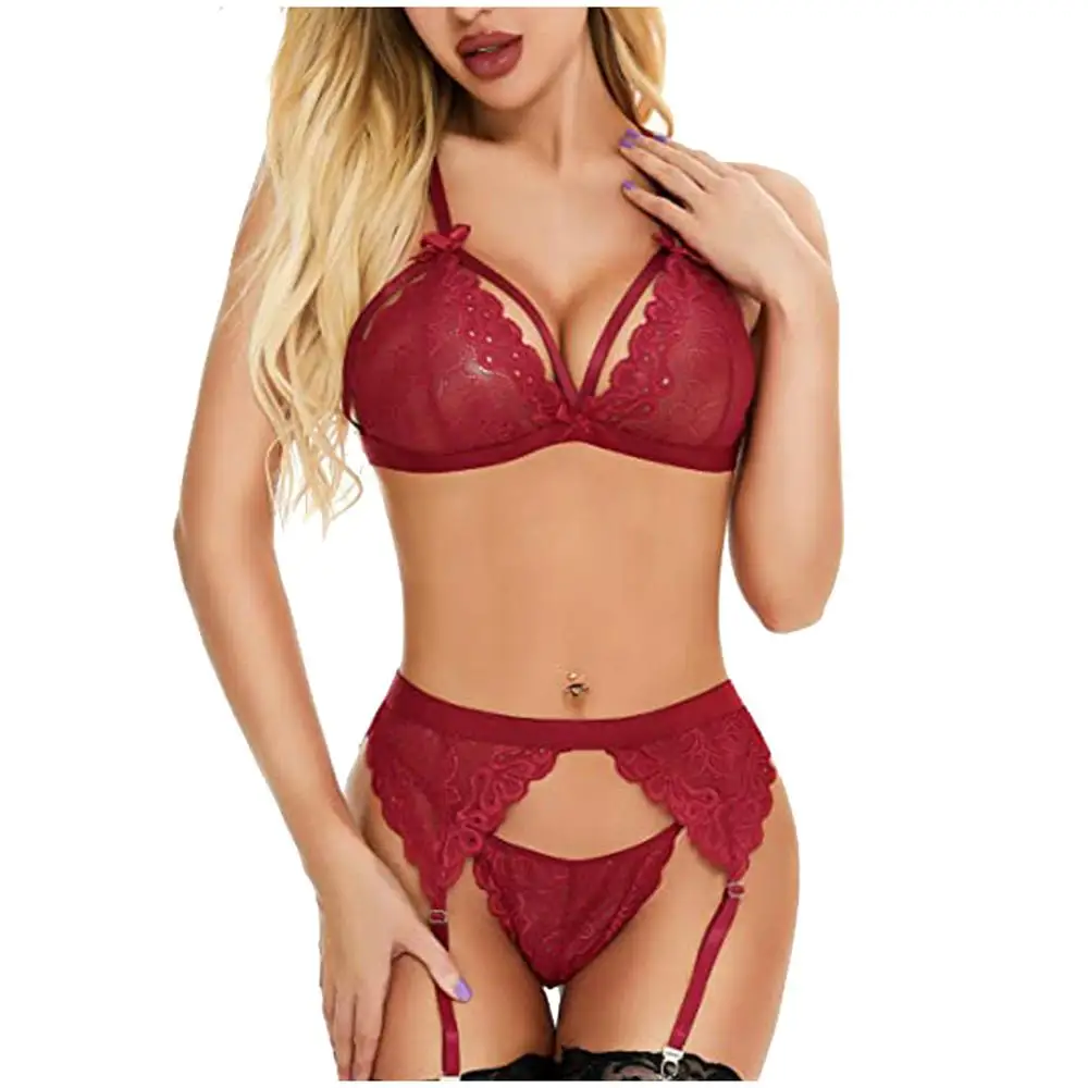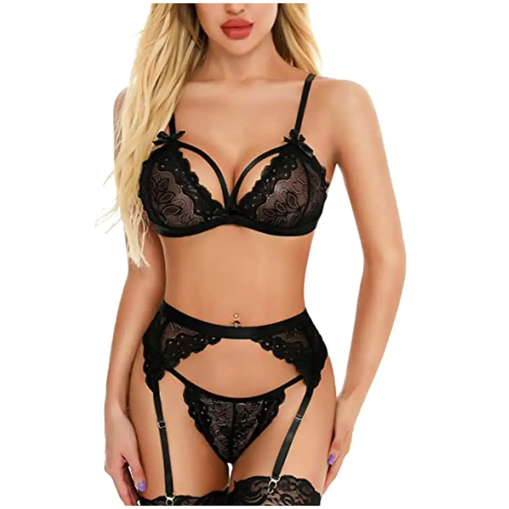 3 шт.компл. женское нижнее белье, сексуальный прозрачный кружевной ...