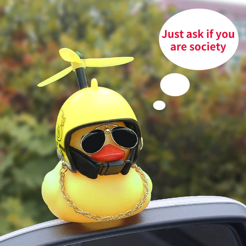 Автомобильный Стайлинг, крутые очки, утенок, украшение для автомобиля, креативное украшение для автомобиля игрушки для приборной панели, с шлемом и цепочкой, забавные автомобильные аксессуары