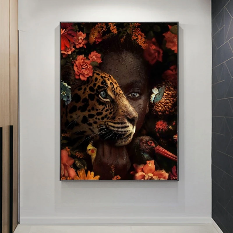 Африканское искусство, черная женщина, тигр, роза, птица, картина маслом на холсте, постеры и принты, Настенная картина, картина для декора гостиной