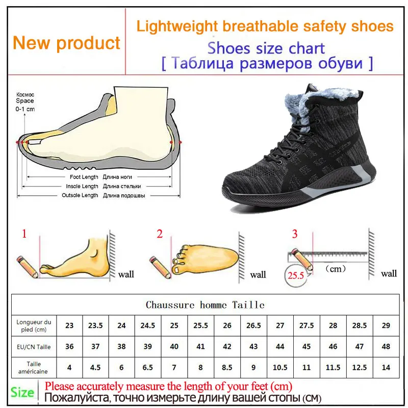 Зимняя защитная обувь Теплая обувь, легкие стальные носочки, конструкция с защитой от проколов, удобная спортивная мягкая Рабочая обувь с высоким верхом