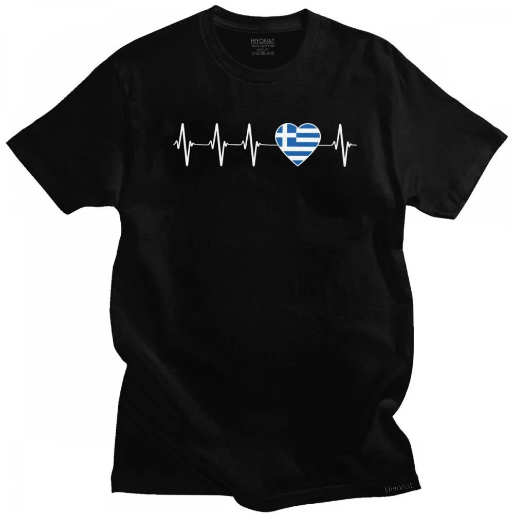 Футболка мужская хлопковая с коротким рукавом, топ с рисунком греческого патриотического флага и сердцебиения, с круглым вырезом, уличная одежда