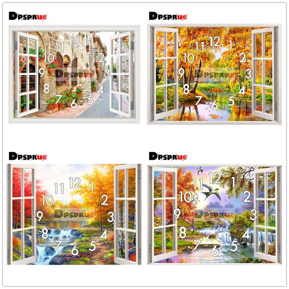 Набор для алмазной вышивки с часами Dpsprue, квадратная круглая Алмазная вышивка, пейзаж на окно, подарок