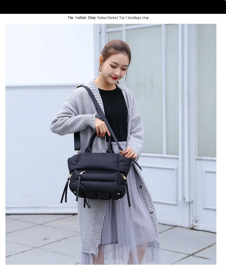 Сумка на плечо женская, вместительная, водонепроницаемая, нейлоновая, с хлопковым пуховым пухом
