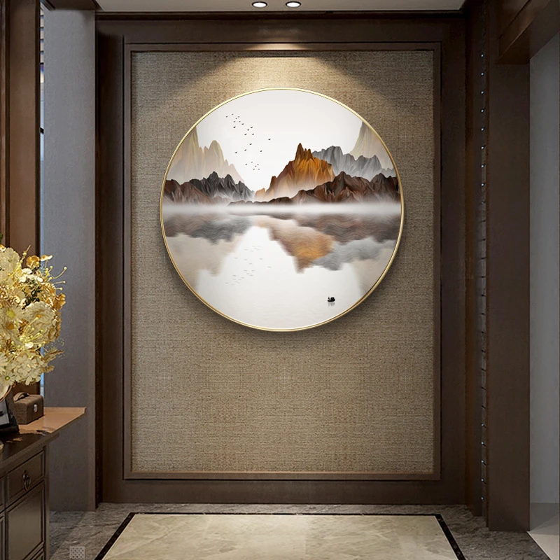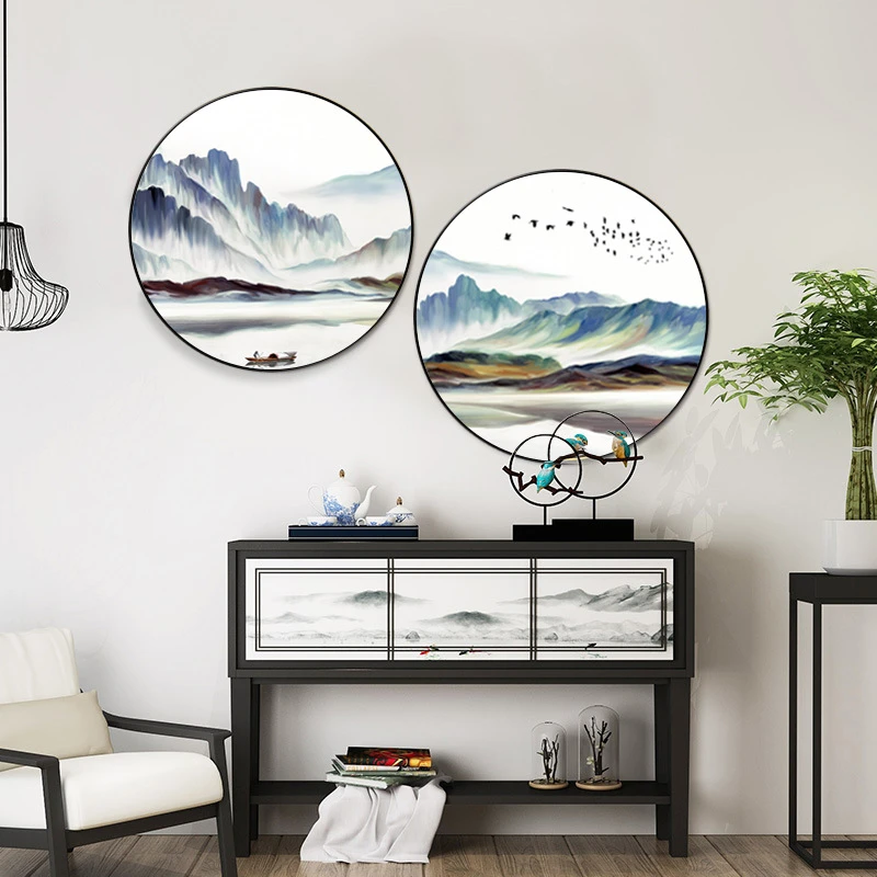 Китайский стиль пейзаж горы реки птицы современный скандинавский ст...