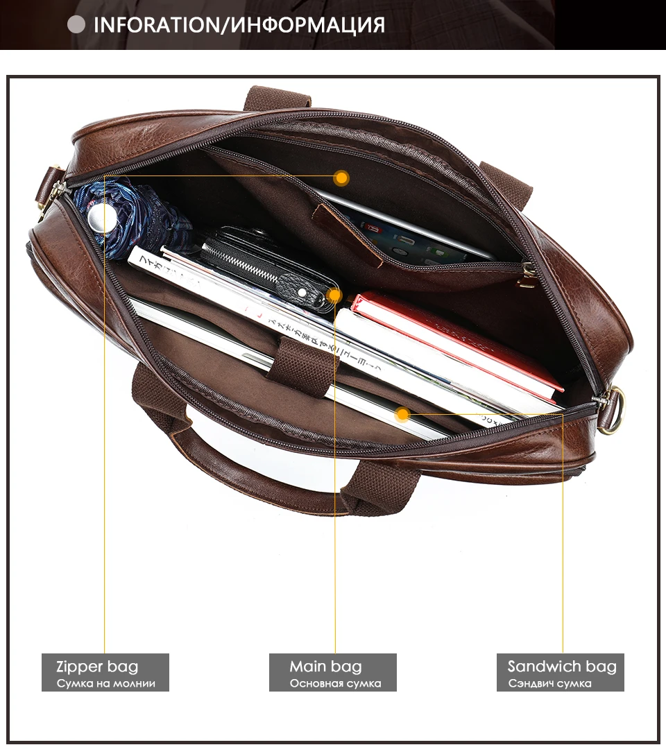 Номер моделиWestal Shoulder Laptop Men Hand Bag Genuine Leather Handbag Briefcase