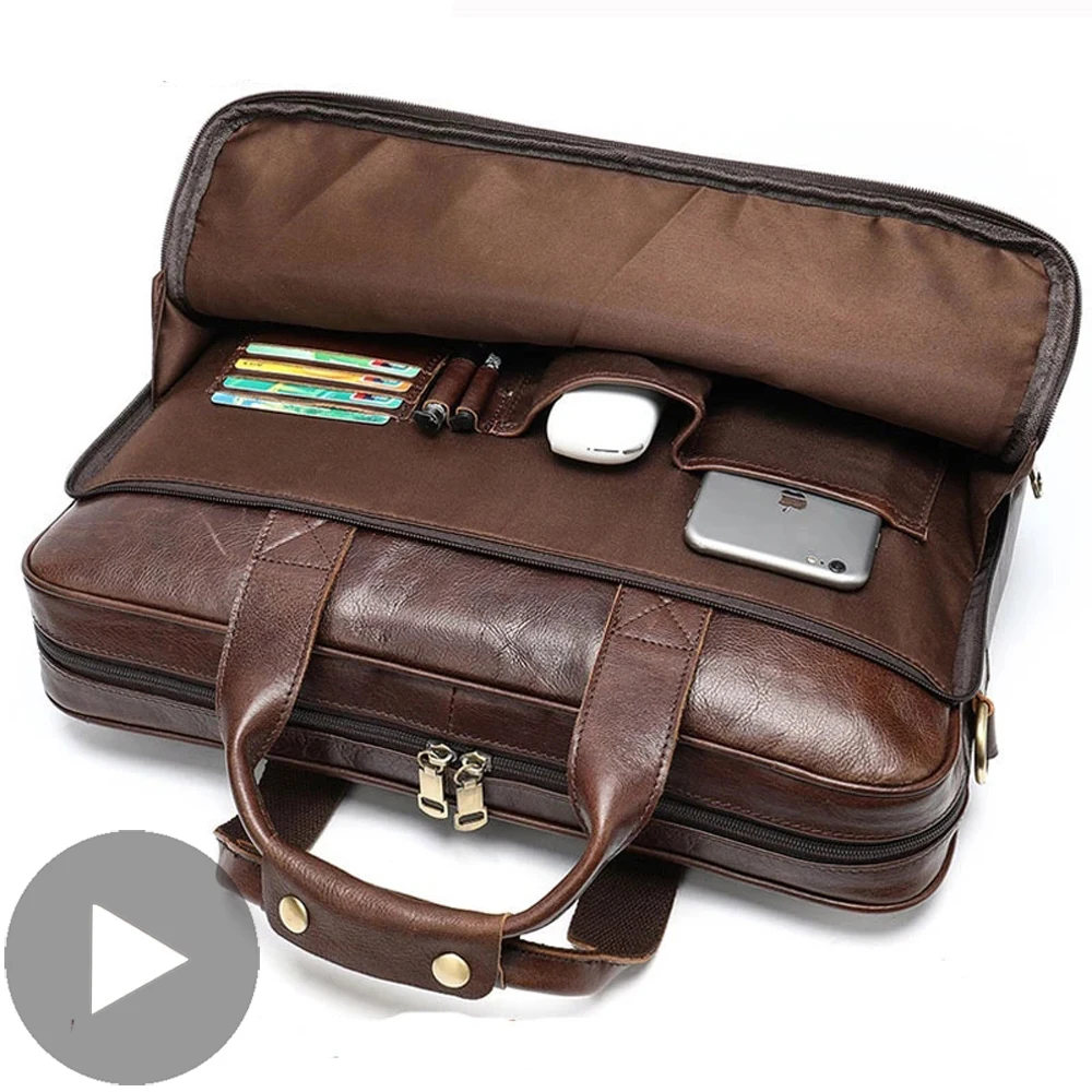 Деловой портфель из натуральной кожи для мужчин, сумка-тоут для ноу...