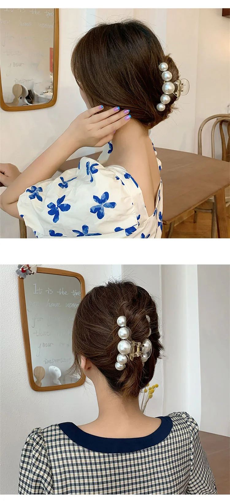 Заколка для волос с жемчугом женская, элегантный большой зажим для волос оверсайз с маленьким макияжем, толстые аксессуары для волос в Корейском стиле, черная белая заколка, 2020