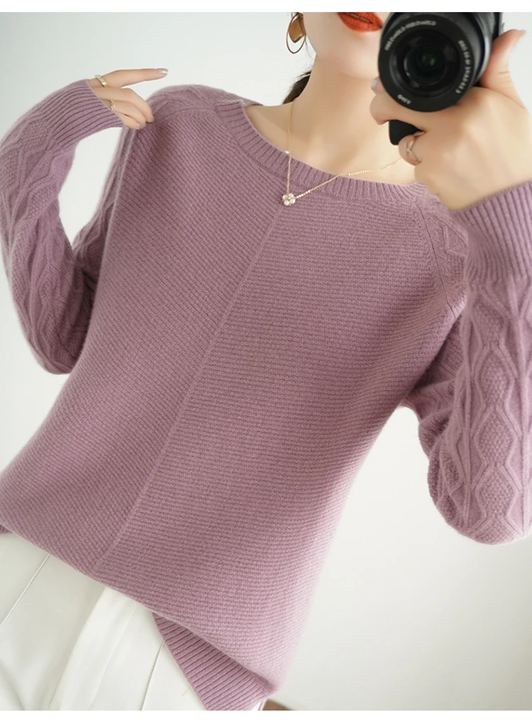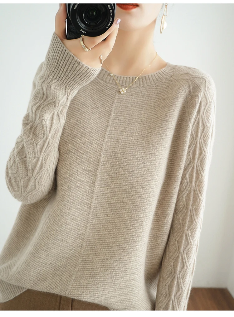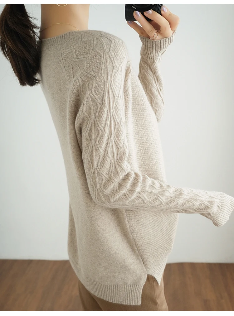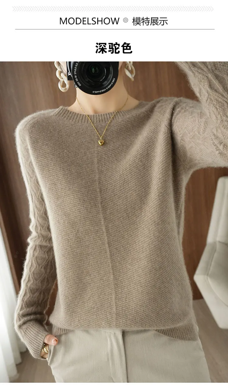 Высококачественный осенне-зимний свитер из 100% кашемира и шерсти женский свободный вязаный свитер большого размера с круглым вырезом для девушек верхняя одежда