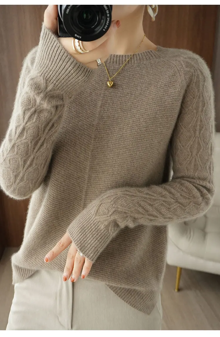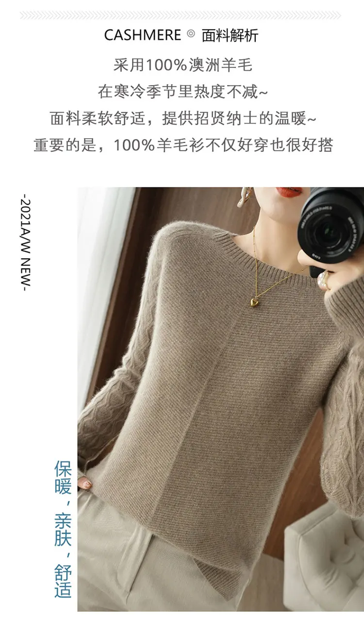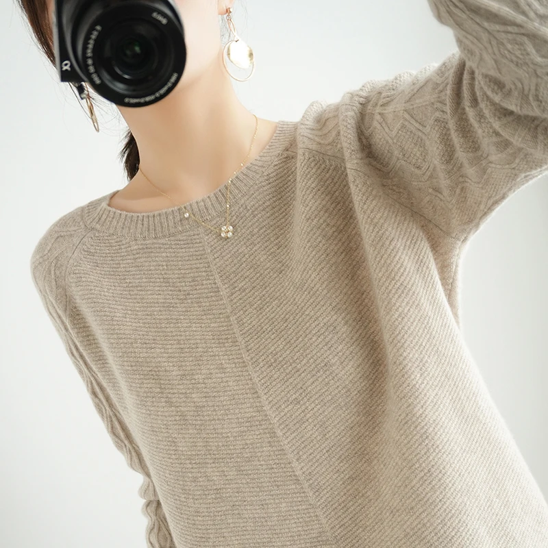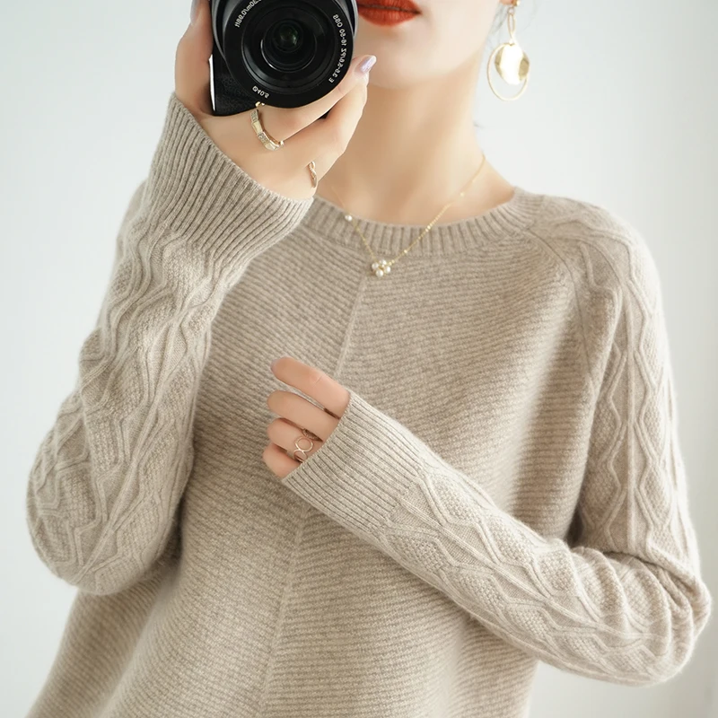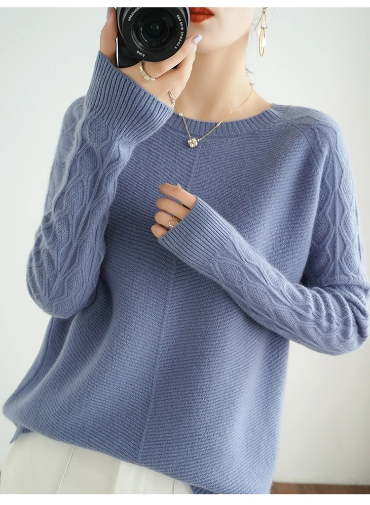 Высококачественный осенне-зимний свитер из 100% кашемира и шерсти женский свободный вязаный свитер большого размера с круглым вырезом для девушек верхняя одежда