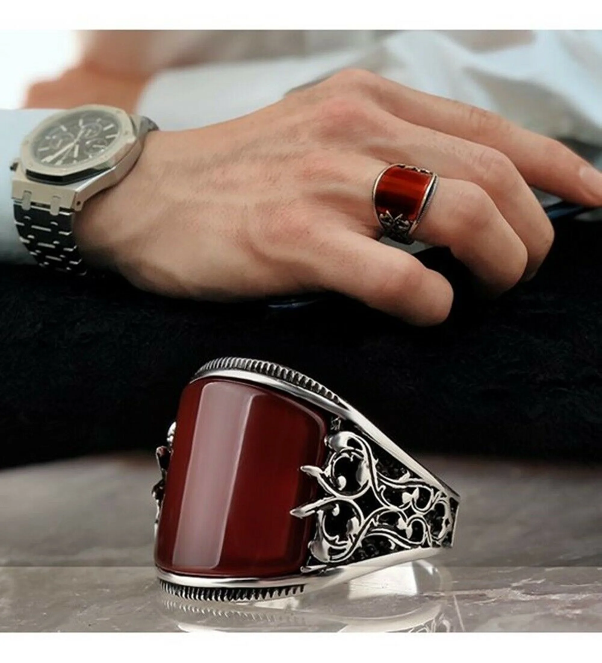 Мужское кольцо, серебряное турецкое ювелирное изделие ручной работы, агат, камень, все размеры, подарок для Него