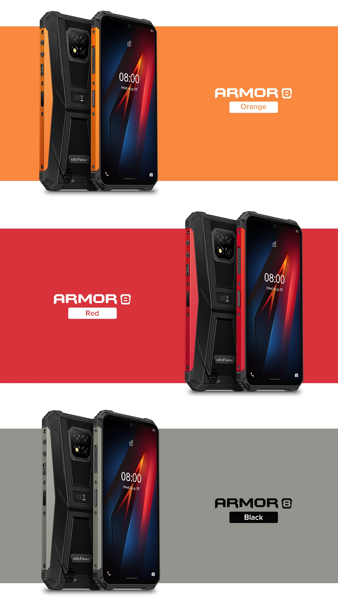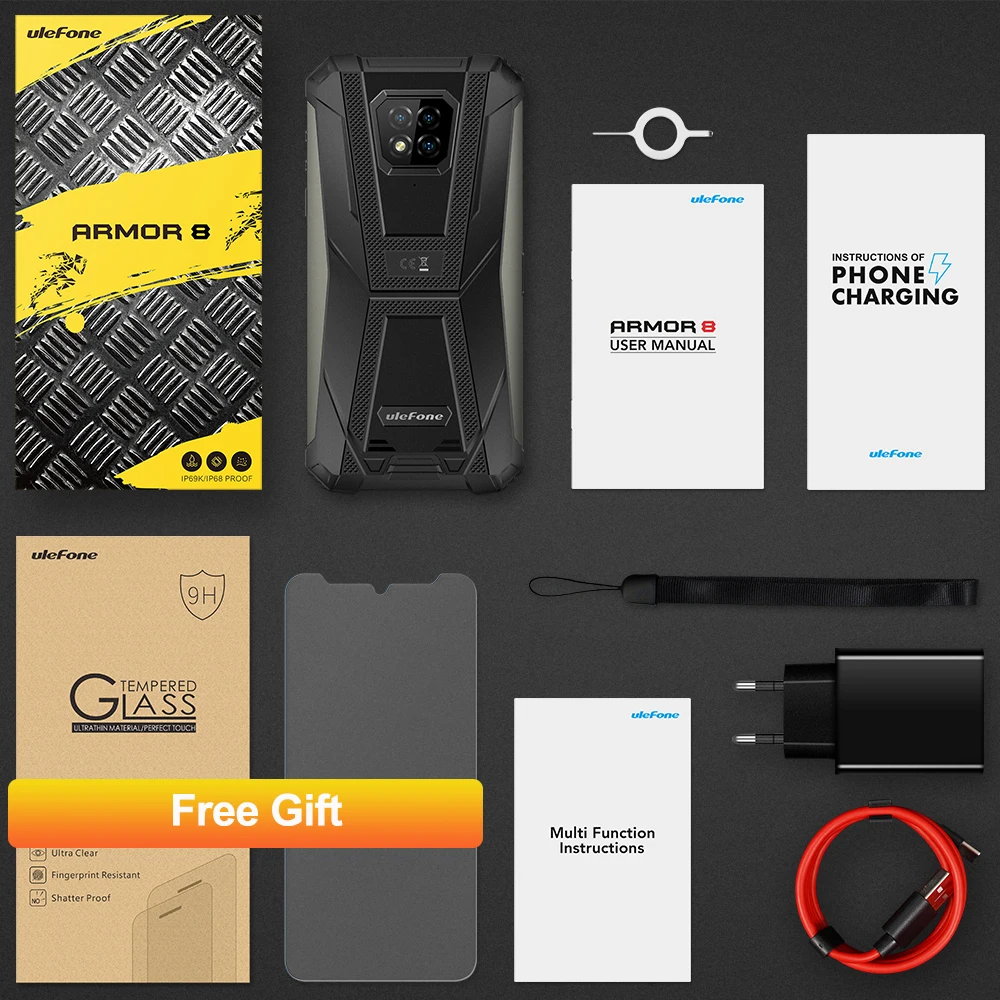 Ulefone Armor 8 сертифицирован по стандартам IP68/IP69K и военному стандарту 810G профилей, включая гидроизоляцию, пылезащитную защиту, удары, падения, вибрацию, экстремальные температуры и многое другое. Он устойчив к погружению в воду глубиной до 1,5 метров до 30 минут и случайному падению с высоты до 1,2 метров. Это идеальное устройство, построенное для обработки воздействия очень влажной, пыльной или песчаной среды и аналогичной промышленной среды без ущерба для производительности.