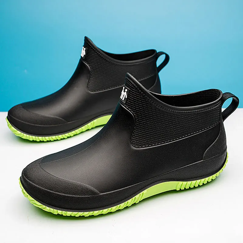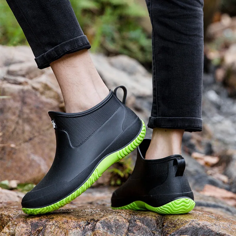 Ботинки резиновые мужские без шнуровки, водонепроницаемые полусапож...