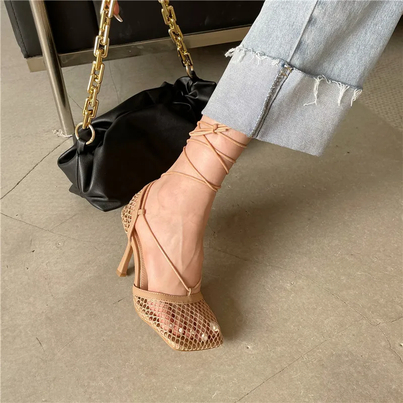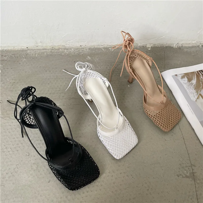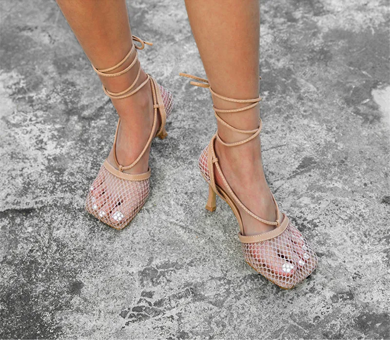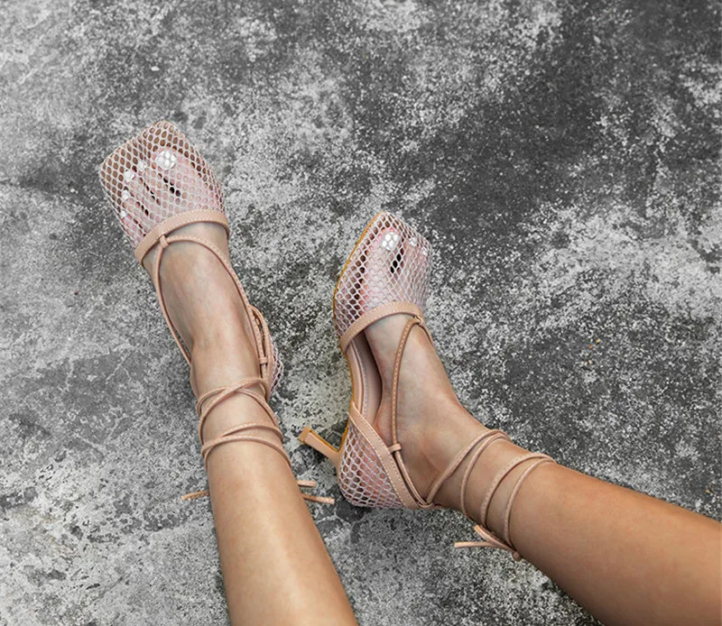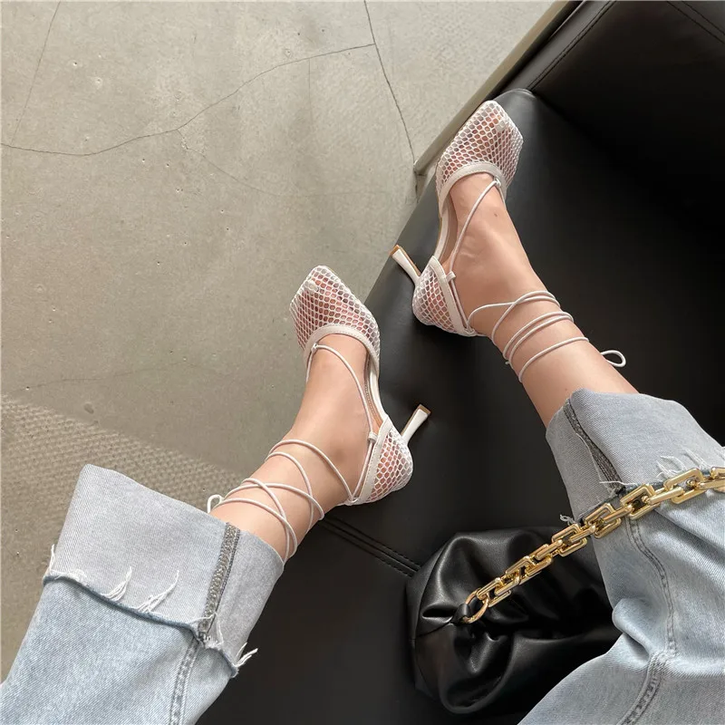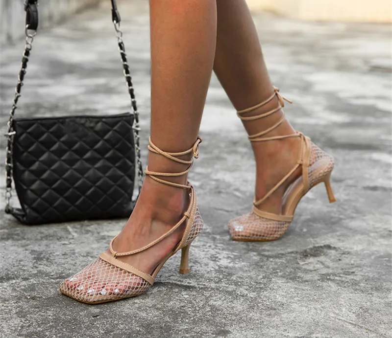 Eilykenмодные женские туфли-лодочки из дышащей сетки с квадратным носком на высоком каблуке-шпильке элегантные женские модельные туфли на шнуровке