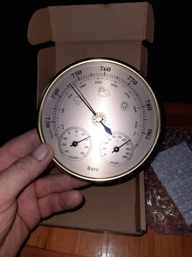 Характеристики:Диапазон измерения: -30 ~ 50 °; 0 ~ 100% отн. Влажности; 970 ~ 1050hPaРазрешение: 1хпа, 1 °, 2% RHТочность: ± 2 °,± 5% RH(30 ~ 80% RH),± 5hPa(970 ~ 1040hPa)Диаметр: 13 см/5,12"Толщина: 4,1 см/1,61"Цвет: золотистыйКоличество: 1 шт.