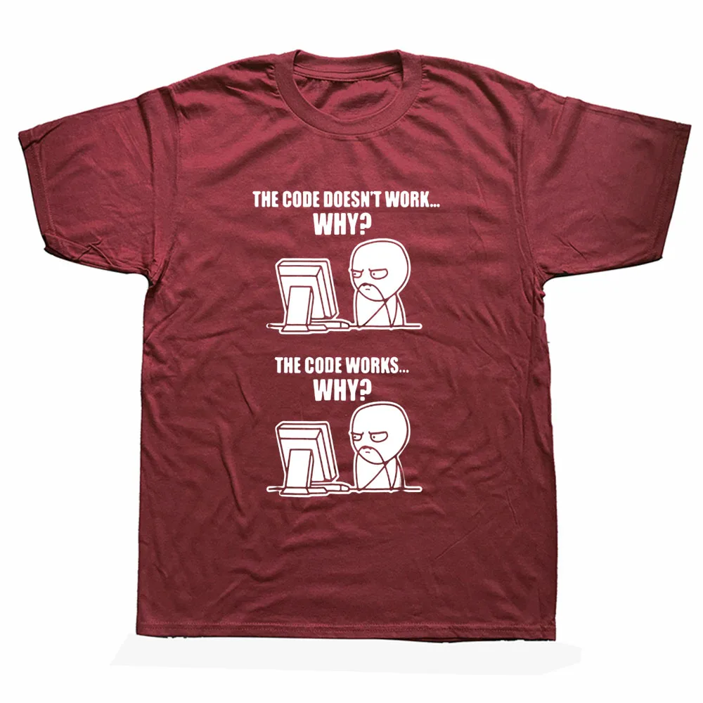 Забавный программист код работы почему футболки мужские летние хлопковые Harajuku с коротким рукавом О-образным вырезом уличная черная футболка
