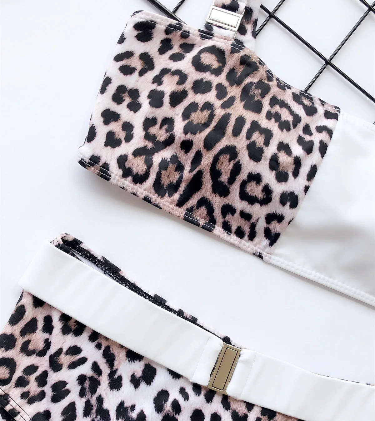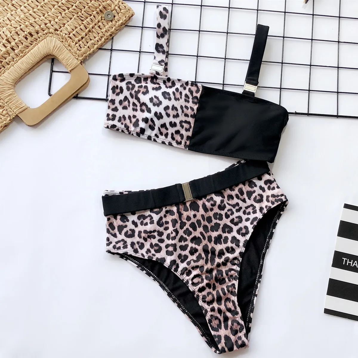 Женский купальник с леопардовым принтом, купальный костюм из двух п...