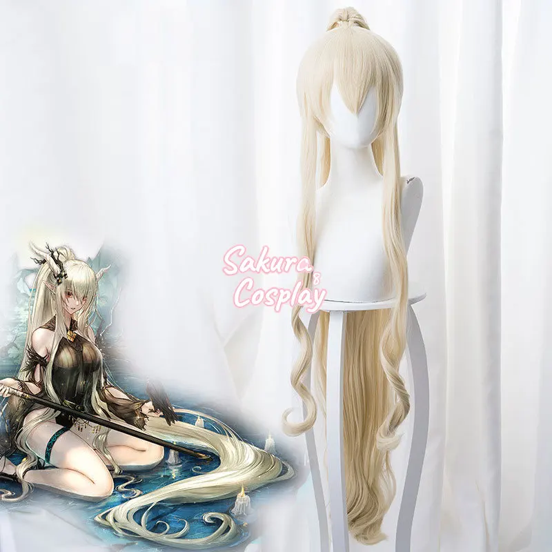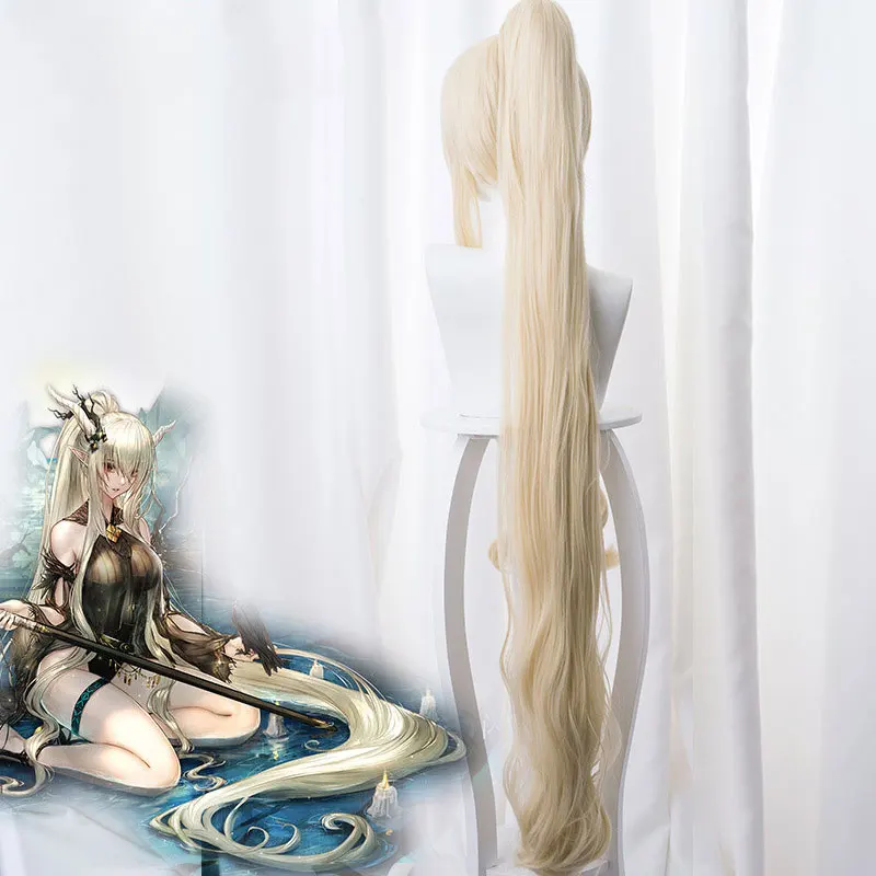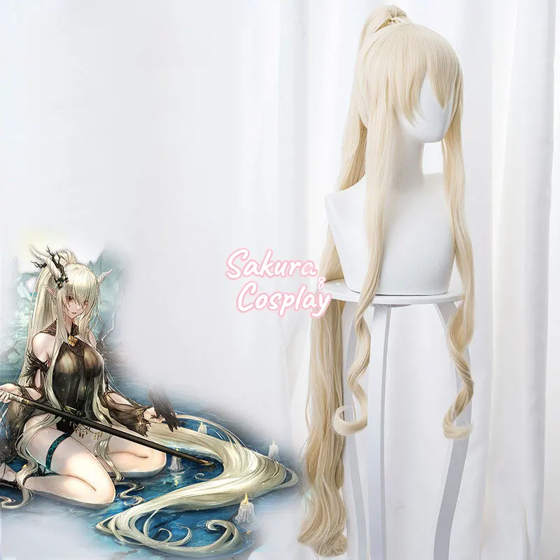 Arknights блестящие Косплэй молока желтый длинный хвост вьющиеся термостойкие синтетические волосы на Хэллоуин Карнавальный вечерние + бесплатная парик Кепки