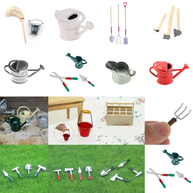 18 видов стилей садовый инструмент, жестяная Лейка для кукольного домика масштаба 112, миниатюрный садовый пейзаж, детская мебель, игрушки, аксессуары сделай сам