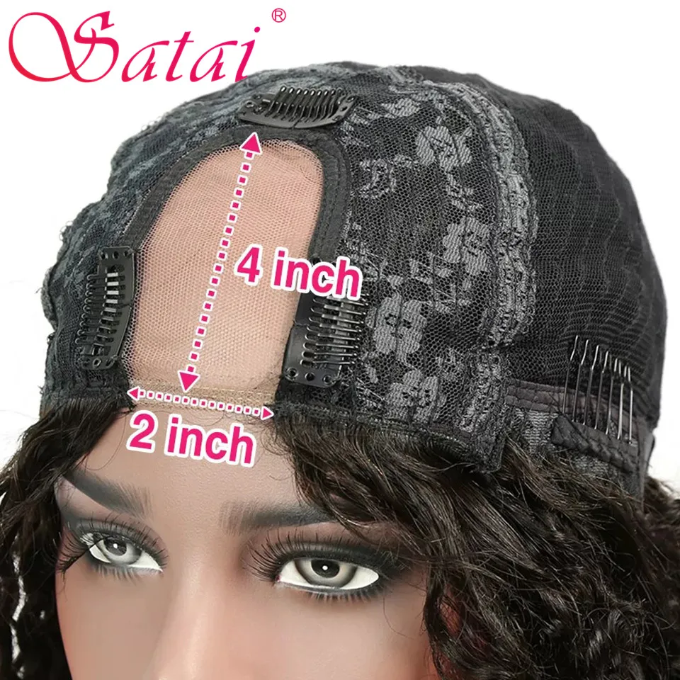 Парик Satai с глубокой волной на сетке спереди, парики из человеческих волос U-образной формы, перуанские парики на сетке спереди, парики из человеческих волос без повреждений, плотность 180 для женщин