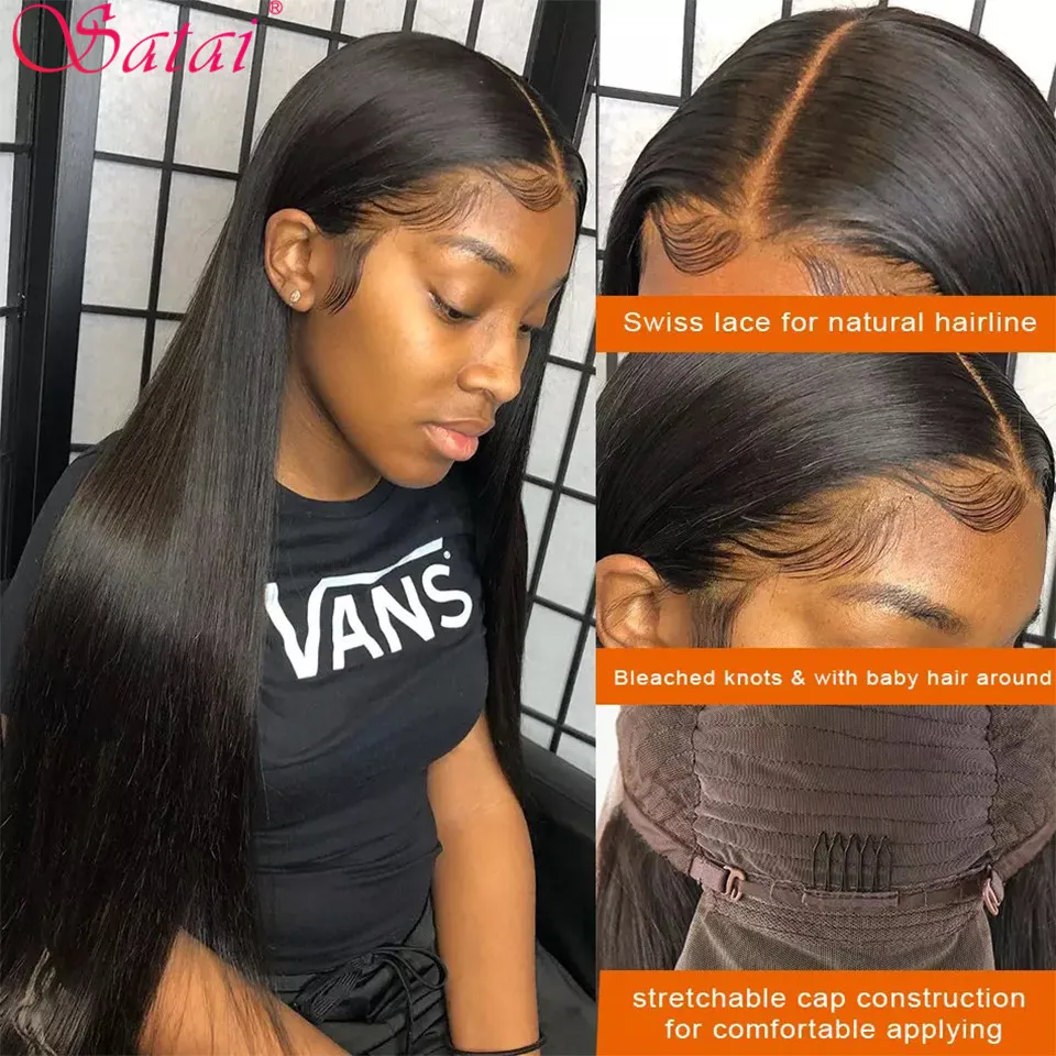Парики из натуральных волос Satai, парики из перуанских натуральных волос с волнистыми прядями, 180 густыми, для женщин