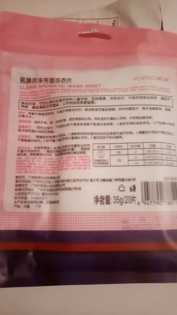 пластинки с достаточно явным ароматом стирального порошка. в принципе, запах не отталкивающий, приятный, но сильный. как только открыла пакет, сразу почувствовала, хотя сами пластины лежат ещё в одном пакете. будьте внимательны, на обратной стороне написан расход средства в зависимости от веса грязного белья. пока ещё не пробовала стирать. надеюсь, всё в порядке будет.