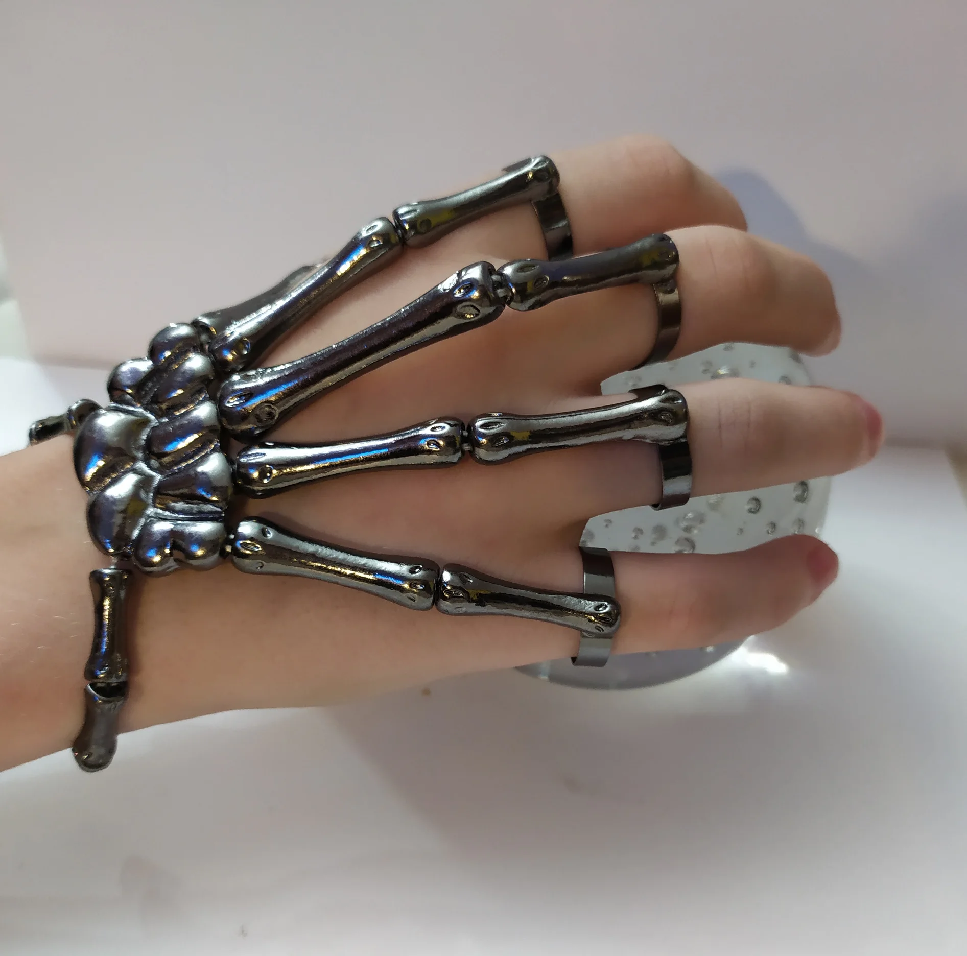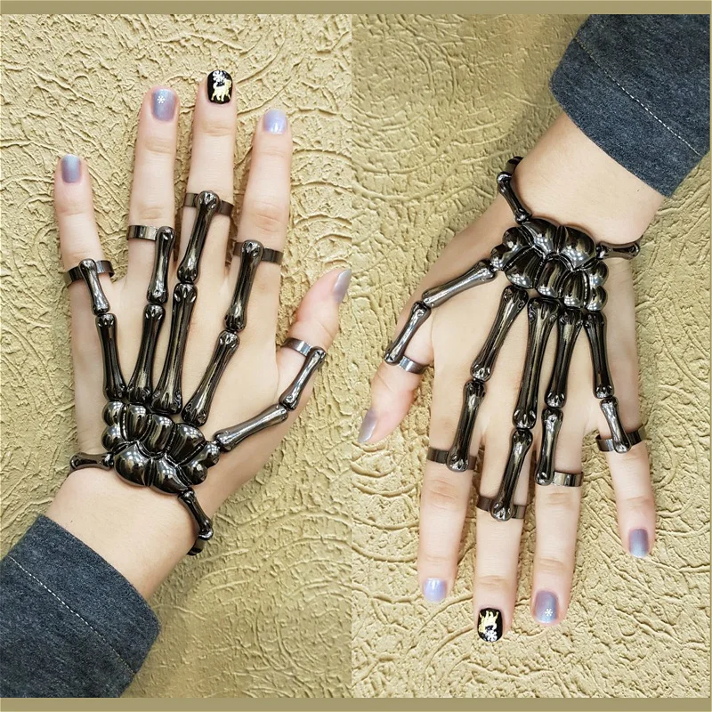 Стимпанк браслет для женщин Готический ручной Череп Скелет Эластичный регулируемый парный мужской браслет браслеты ювелирные изделия