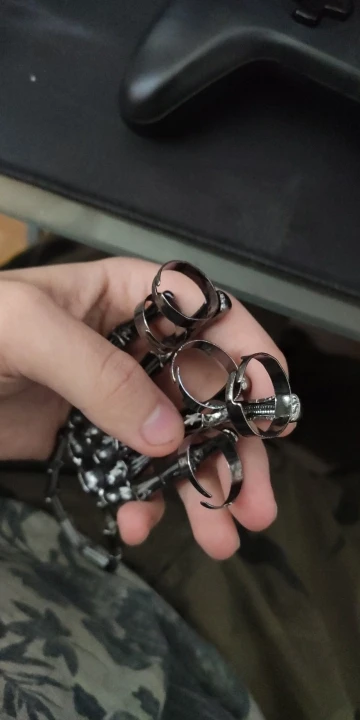 Доставка очень быстрая, 18 дней, курьером прямо до двери хотя он не очень-то хотел приходить и искал отмазки, но продавец тут не при чем, он молодец) За исключением того что упаковка была фиговой и вся эта ерунда чуть не повыпадала.Очень крутые браслеты, кольца регулируют размер, сами костяшки на резиночках, материал более-менее крепкий, посмотрим сколько прослужит.